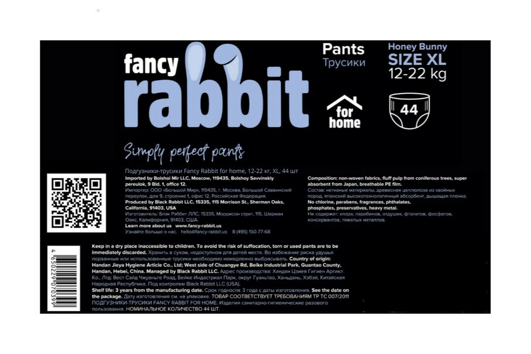 Купить Подгузники-трусики Fancy Rabbit for home Honey Bunny 12-22 кг XL 44 шт