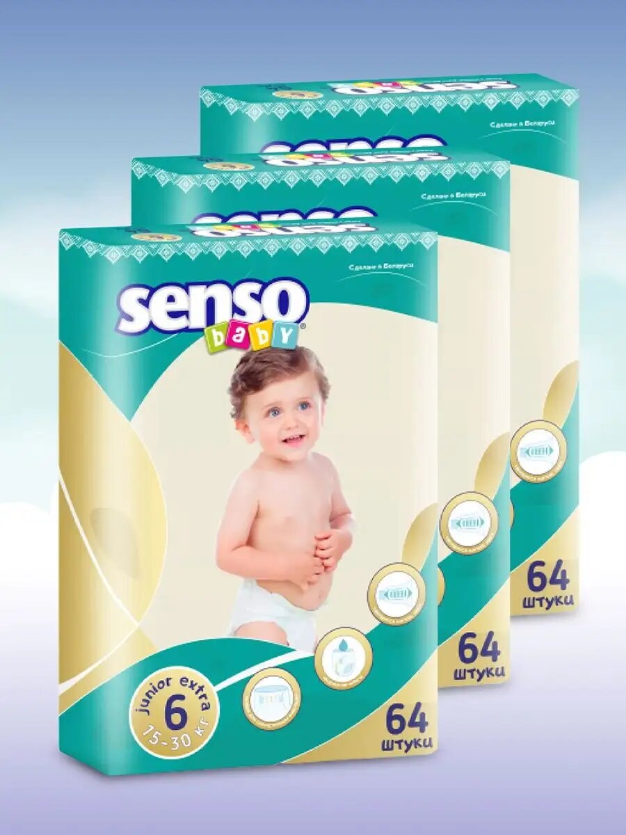 Подгузники трусики Senso Baby детские, 6 размер, весовая группа 15 кг+, дневные и ночные, 88 шт, голубой