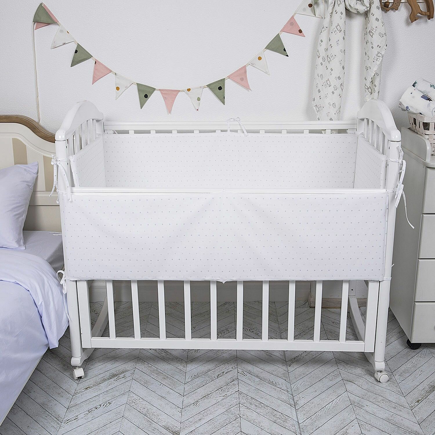 Купить Бортики в детскую кроватку для новорожденных 120х35-2 шт; 60х35-2шт. Съемные чехлы на молнии "Горох