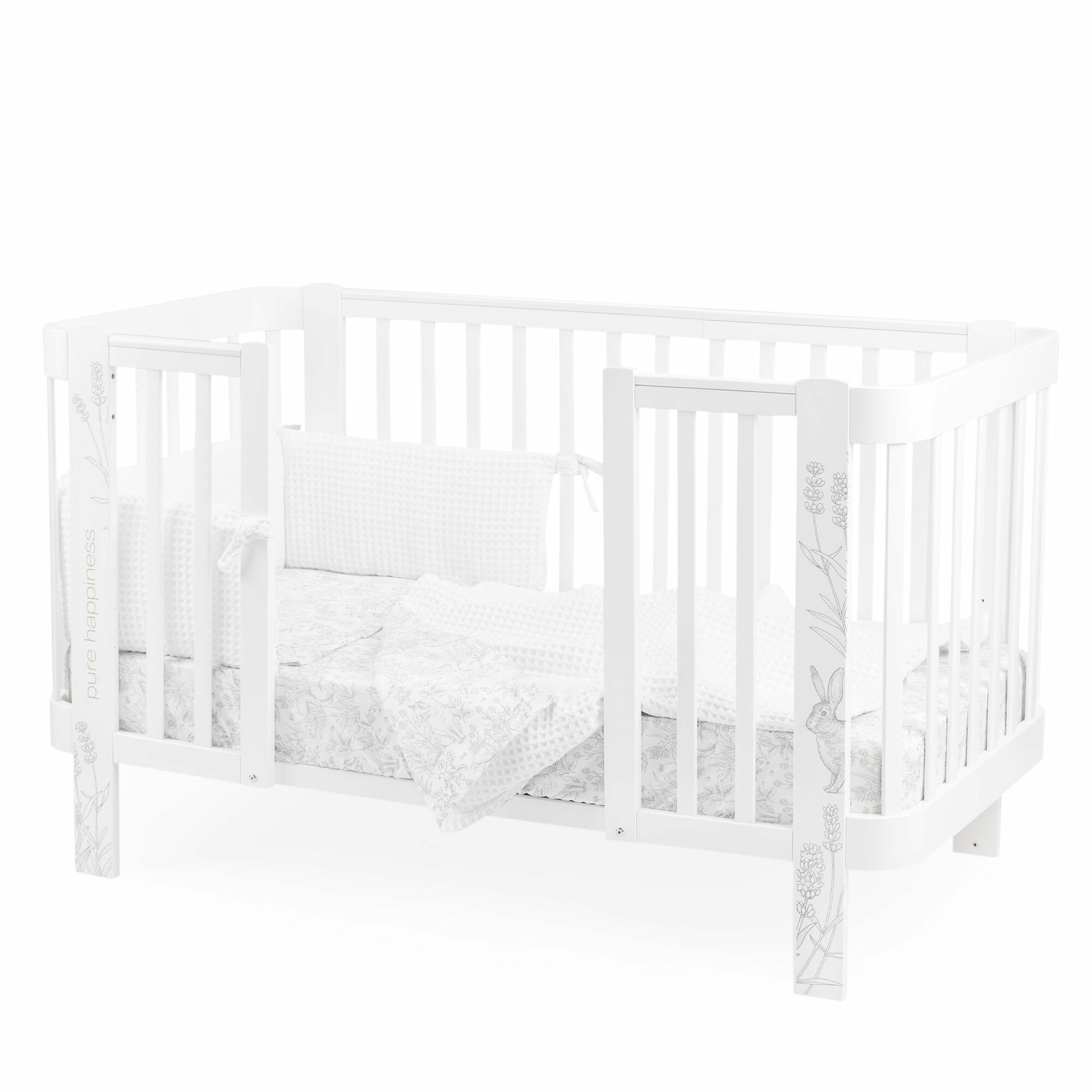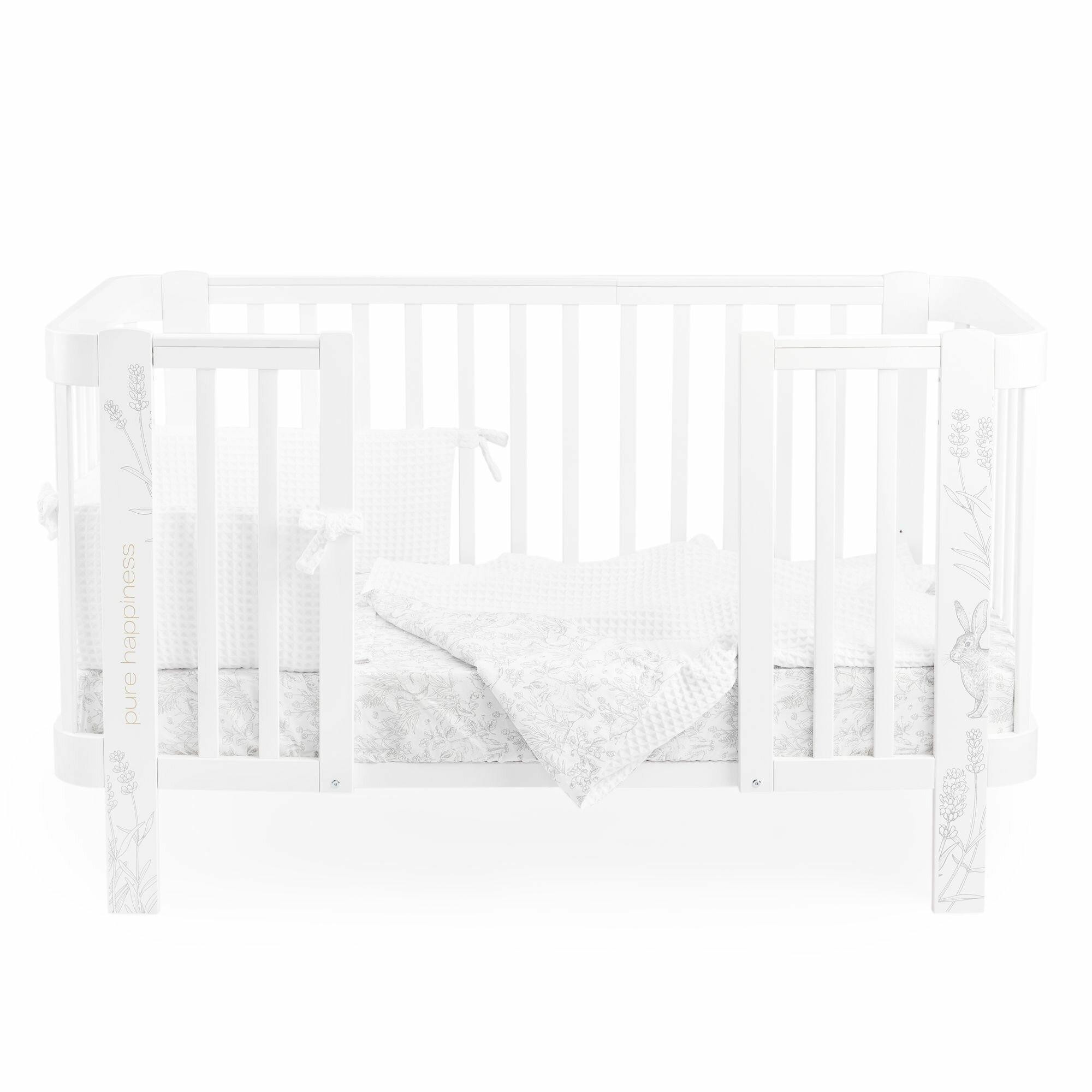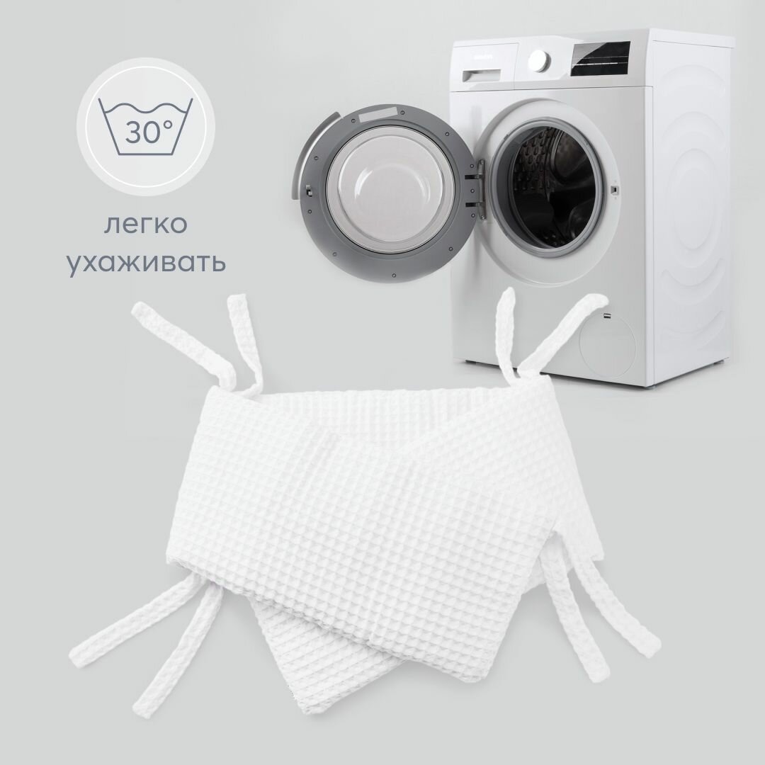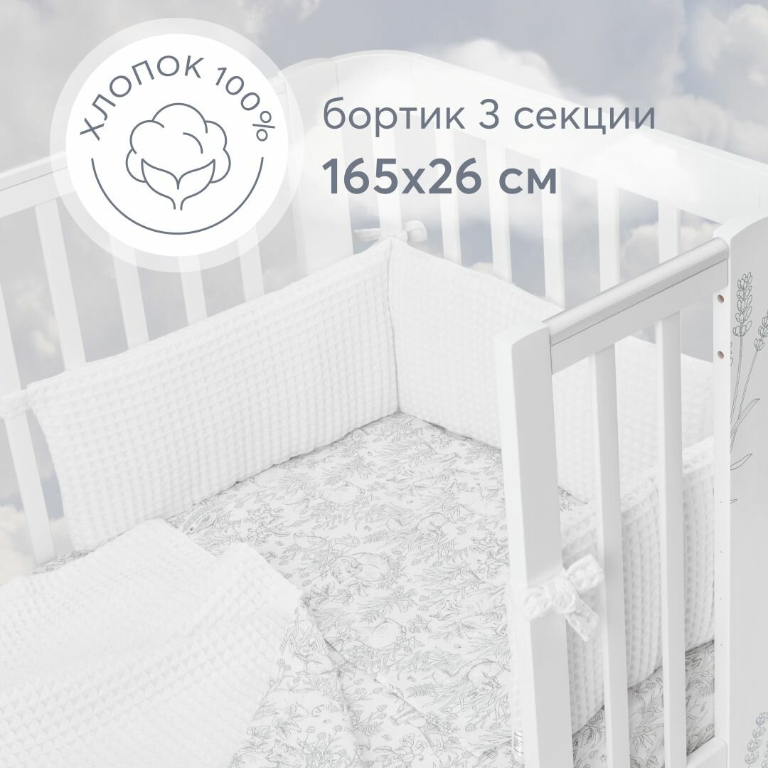 87555, Бортики в кроватку для новорожденных Happy Baby 165х26 см, защитный, для детской кровати, плотный и безопасный наполнитель, белый