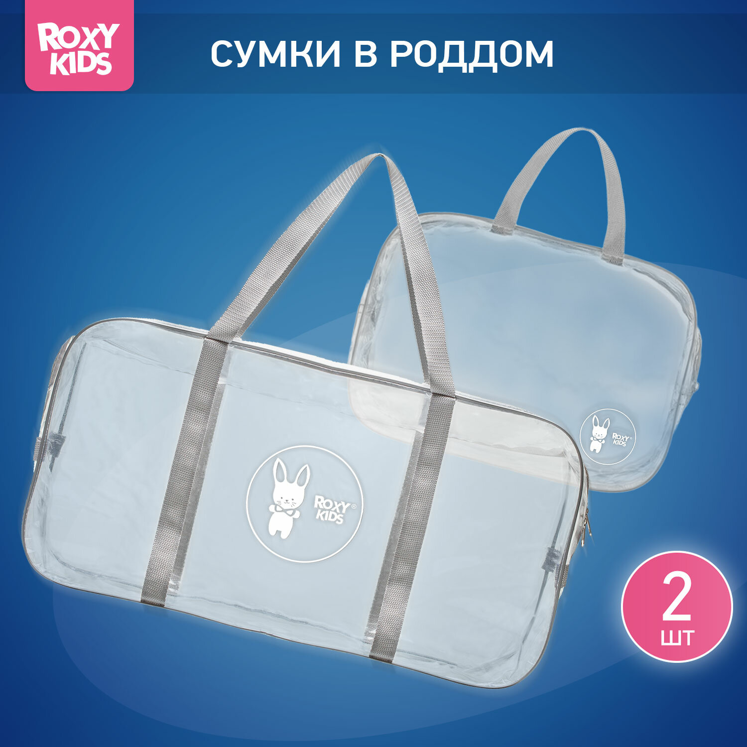 Сумка в роддом прозрачная для беременной, 2 шт в комплекте, цвет серый