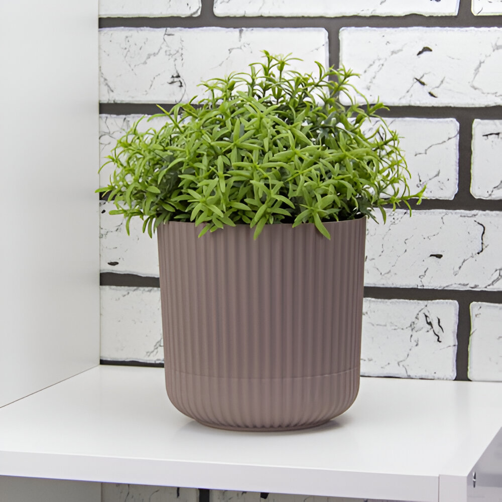 Кашпо / горшок для цветов D180мм 3,6л с пристегнутым поддоном вельвет, Коричневый ротанг