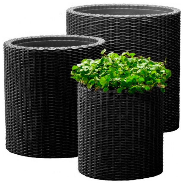 Цилиндрическое кашпо под ротанг Keter 3 шт. графит