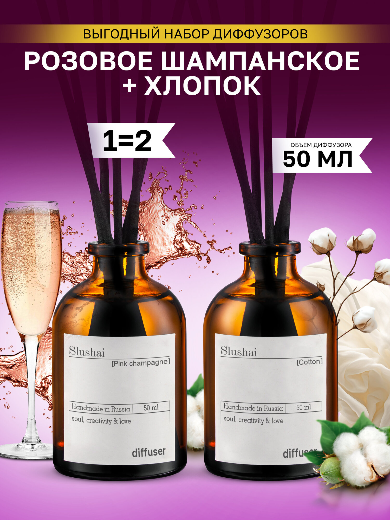 Ниже Вы можете прочитать отзывы на Набор ароматических диффузоров Хлопок + Розовое шампанское / ароматизатор для дома с палочками 2 шт, ознакомится с подробными характеристиками, посмотреть интересные обзоры и фотографии на Набор ароматических диффузоров Хлопок + Розовое шампанское / ароматизатор для дома с палочками 2 шт.