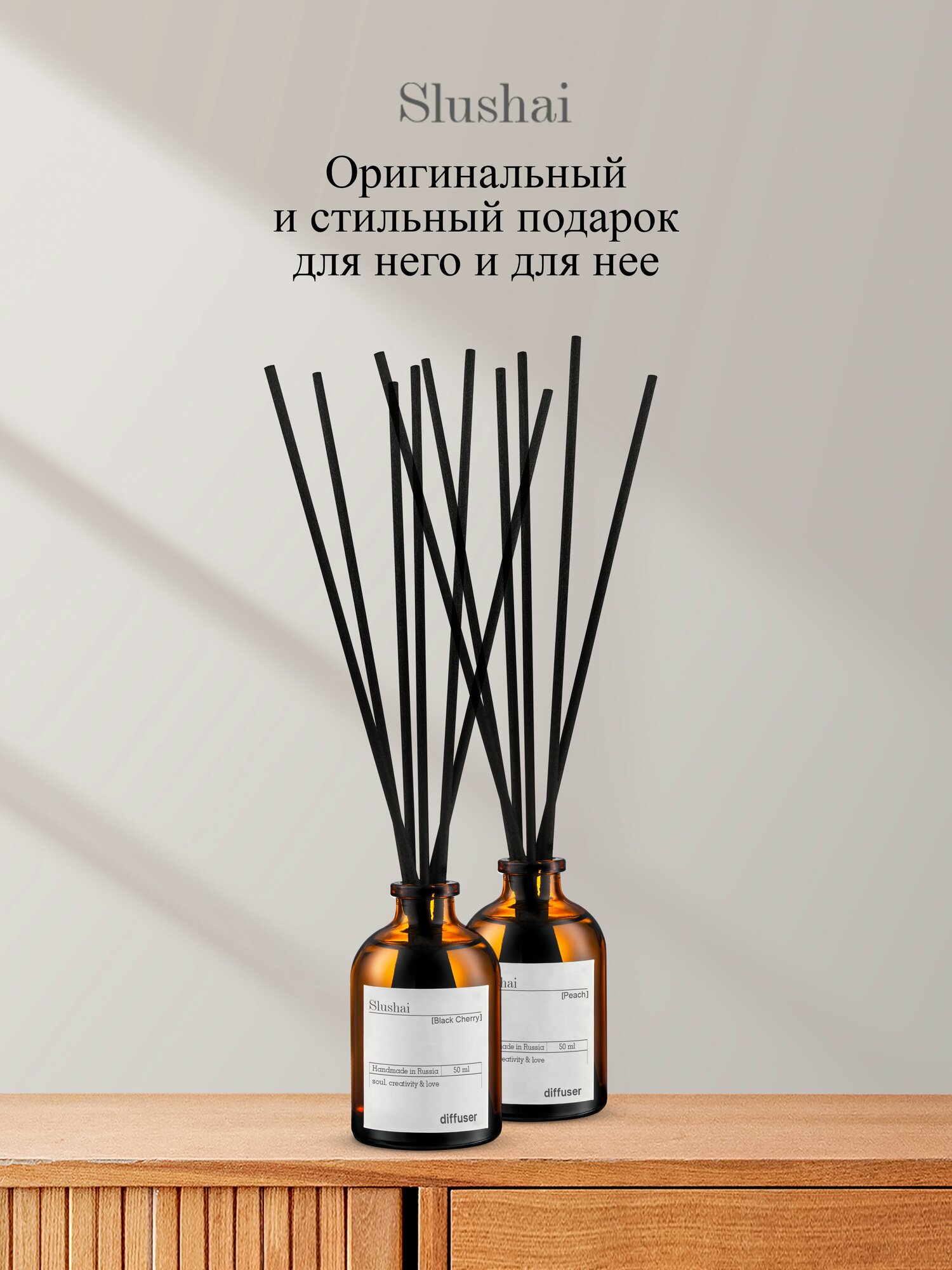 Набор ароматических диффузоров Slushai "Амбра и черный перец", "табак и ваниль"
