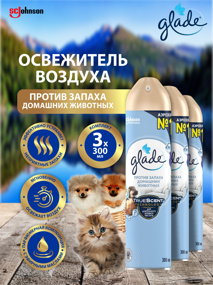 Купить Glade Освежитель воздуха Против запаха домашних животных, 300 мл - 3 шт