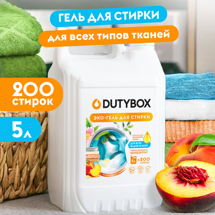 Купить Dutybox гель для стирки персик и масло жожоба 5л. Для всех видов тканей