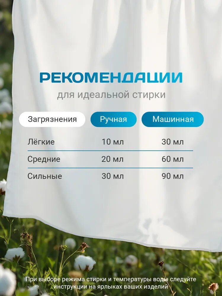 | Особенности | антибактериальное / безопасно для детей / биоразлагаемое / гипоаллергенное / концентрат / подходит для чувствительной кожи / стирка при любой температуре |