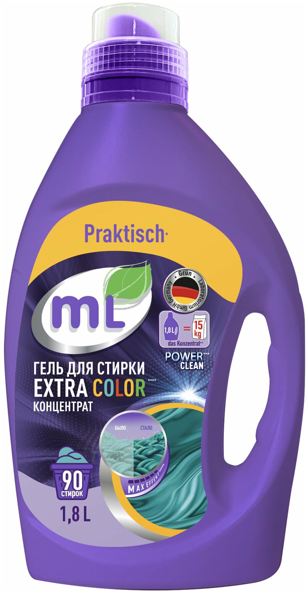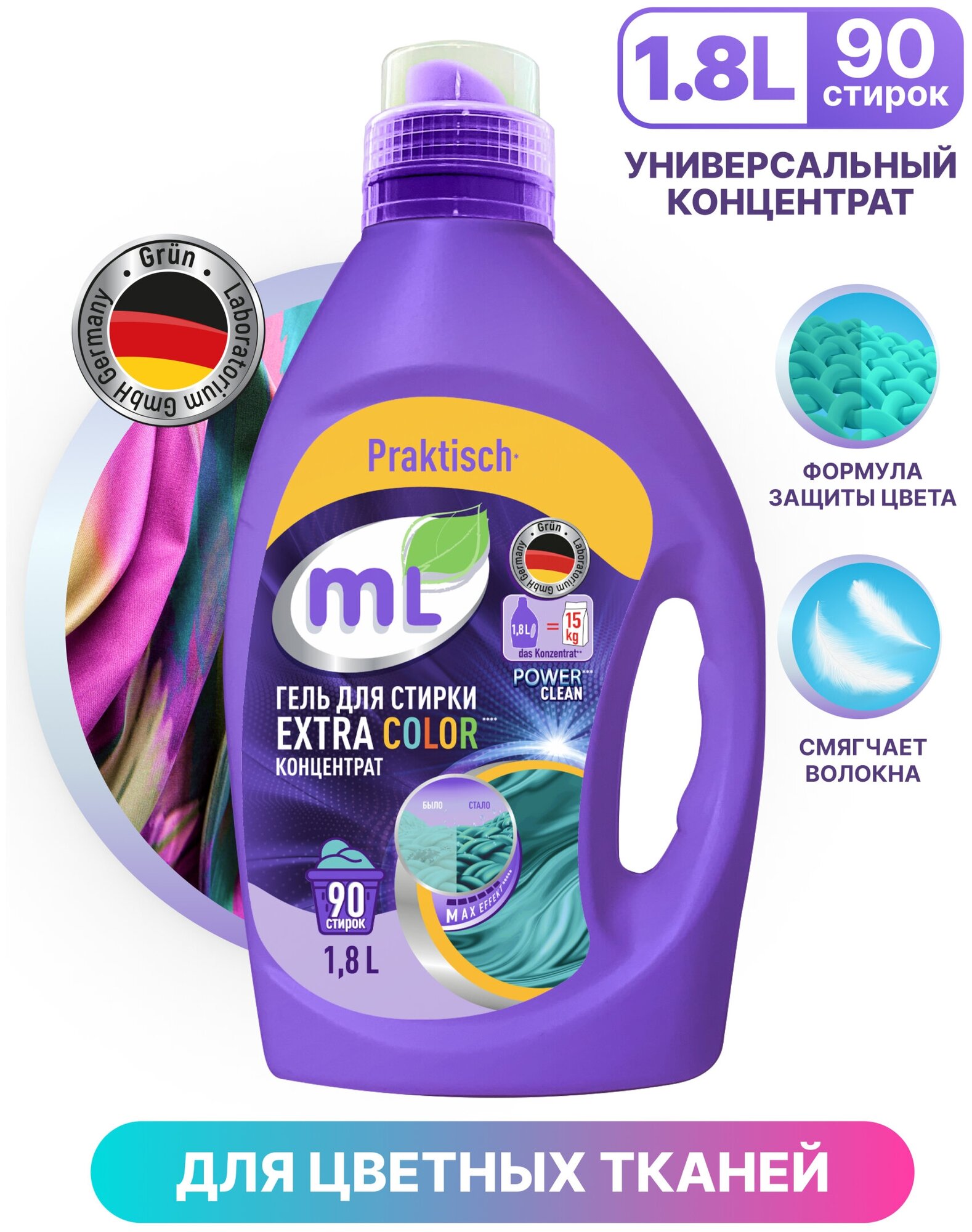 Гель для стирки цветного белья mL EXTRA COLOR, универсальный концентрат, формула защиты цвета, 1.8 л