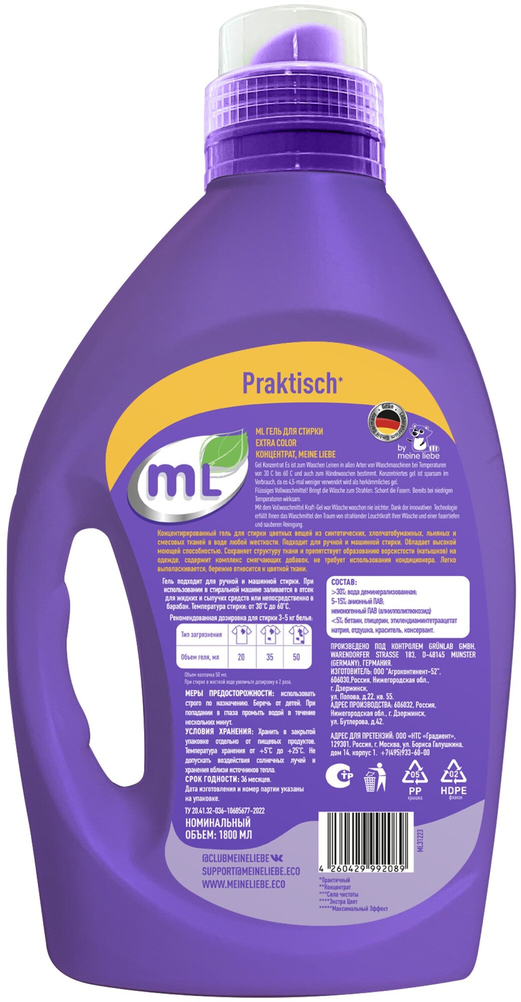 Ниже Вы можете прочитать отзывы на MEINE LIEBE Гель для стирки цветного белья mL EXTRA COLOR, универсальный концентрат, формула защиты цвета, 1.8 л ML31223, ознакомится с подробными характеристиками, посмотреть интересные обзоры и фотографии на MEINE LIEBE Гель для стирки цветного белья mL EXTRA COLOR, универсальный концентрат, формула защиты цвета, 1.8 л ML31223.