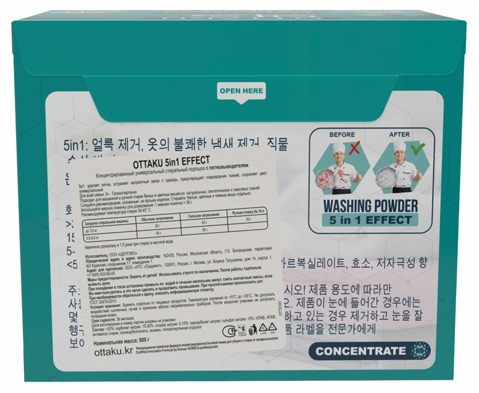 Стиральный порошок 5in1, Ottaku, Effect с пятновыводителем, универсальный, концентрат, 900 г
