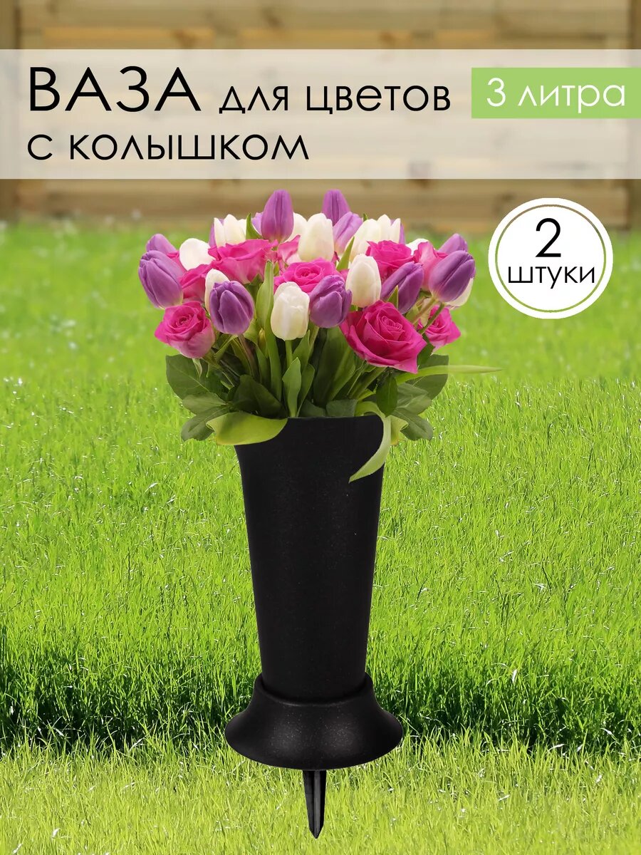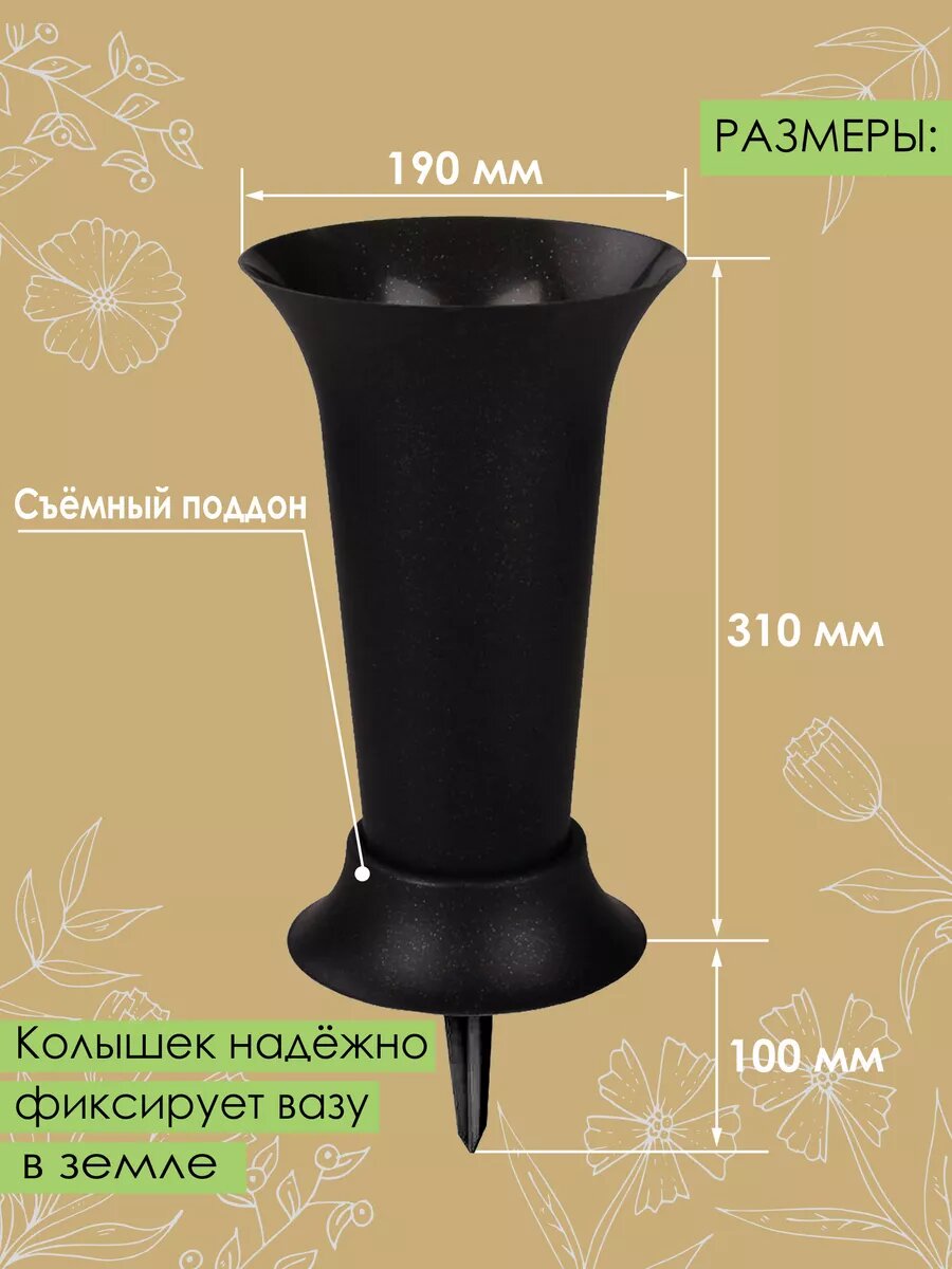 ЗПИ «Альтернатива» Ваза под срезку Д190мм, В410мм с колышкомчерный М5143