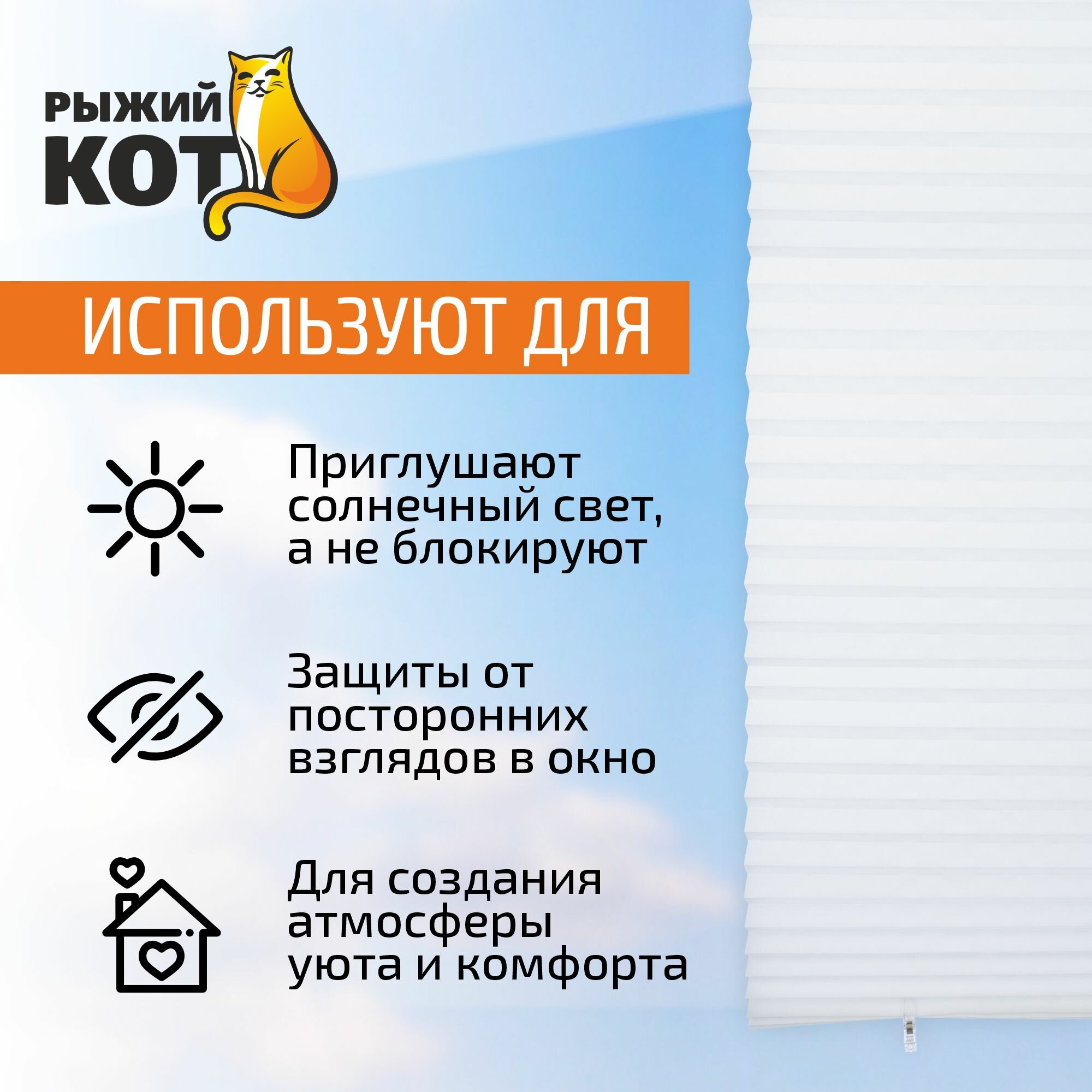 СохранитьШтора плиссе Рыжий кот Skandi самоклеющаяся, горизонтальная, из полиэстера, белая, размер 60х180см / товары для дома интересное:
