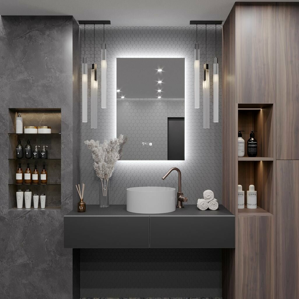 СохранитьЗеркало в ванную с подсветкой настенное Alias Квартал 60*40 для ванной с холодной LED-подсветкой и часами, сенсорная кнопка интересное: