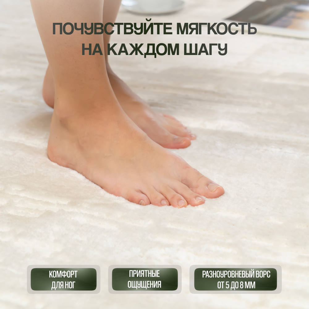 Ковер 120х180 с ворсом ковер в детскую, в спальню, в гостиную, бежевый / кремовый, производство Турция