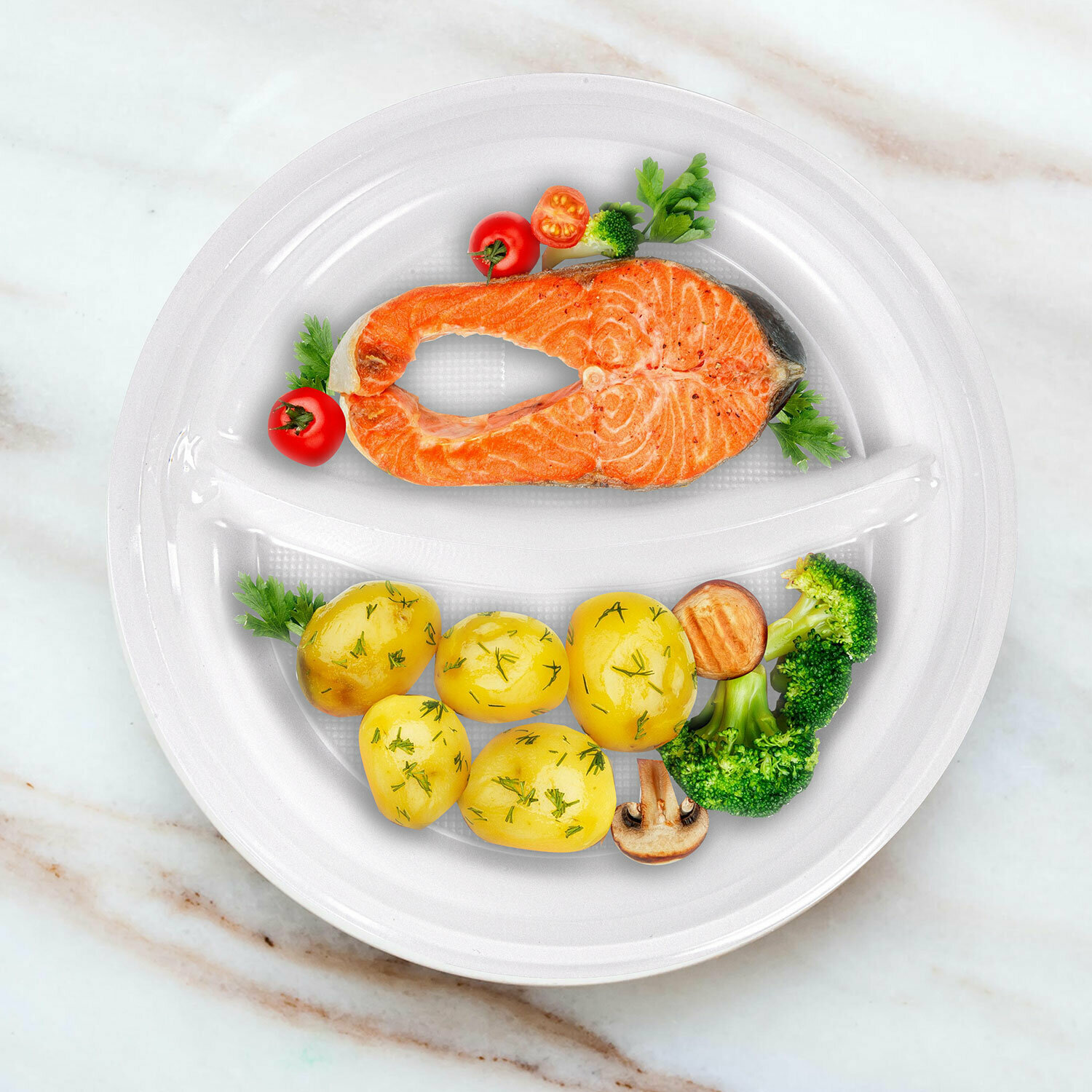 Одноразовые тарелки LAIMA 3-х секционные, 100 штук, 220 мм, белые, ПП, холодное, горячее, стандарт