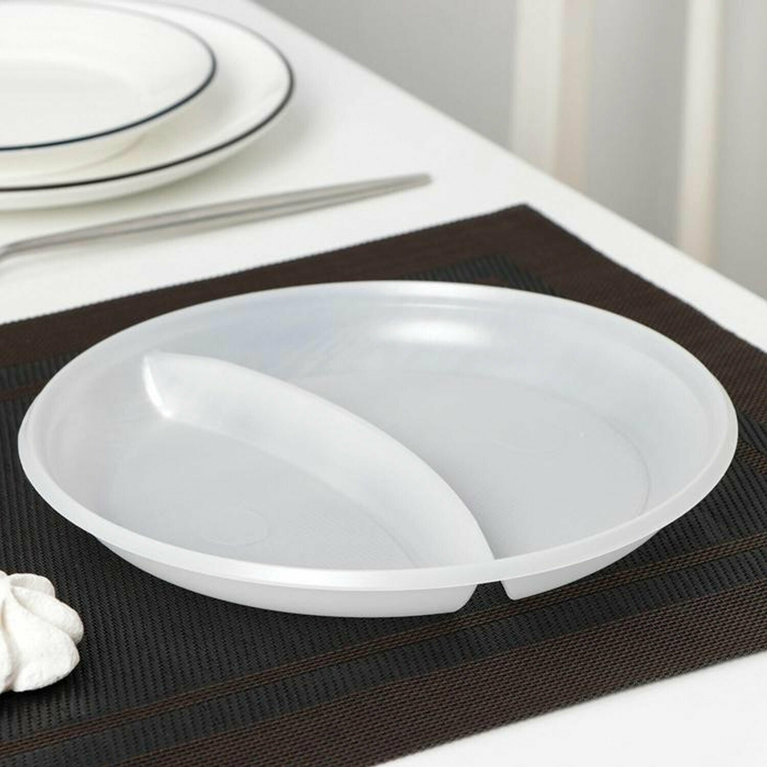 Одноразовые пластиковые плоские тарелки (одноразовая посуда) 2-х секционные Комплект 100 шт. 220 мм, PP, холодное/горячее, Laima Стандарт, 608768