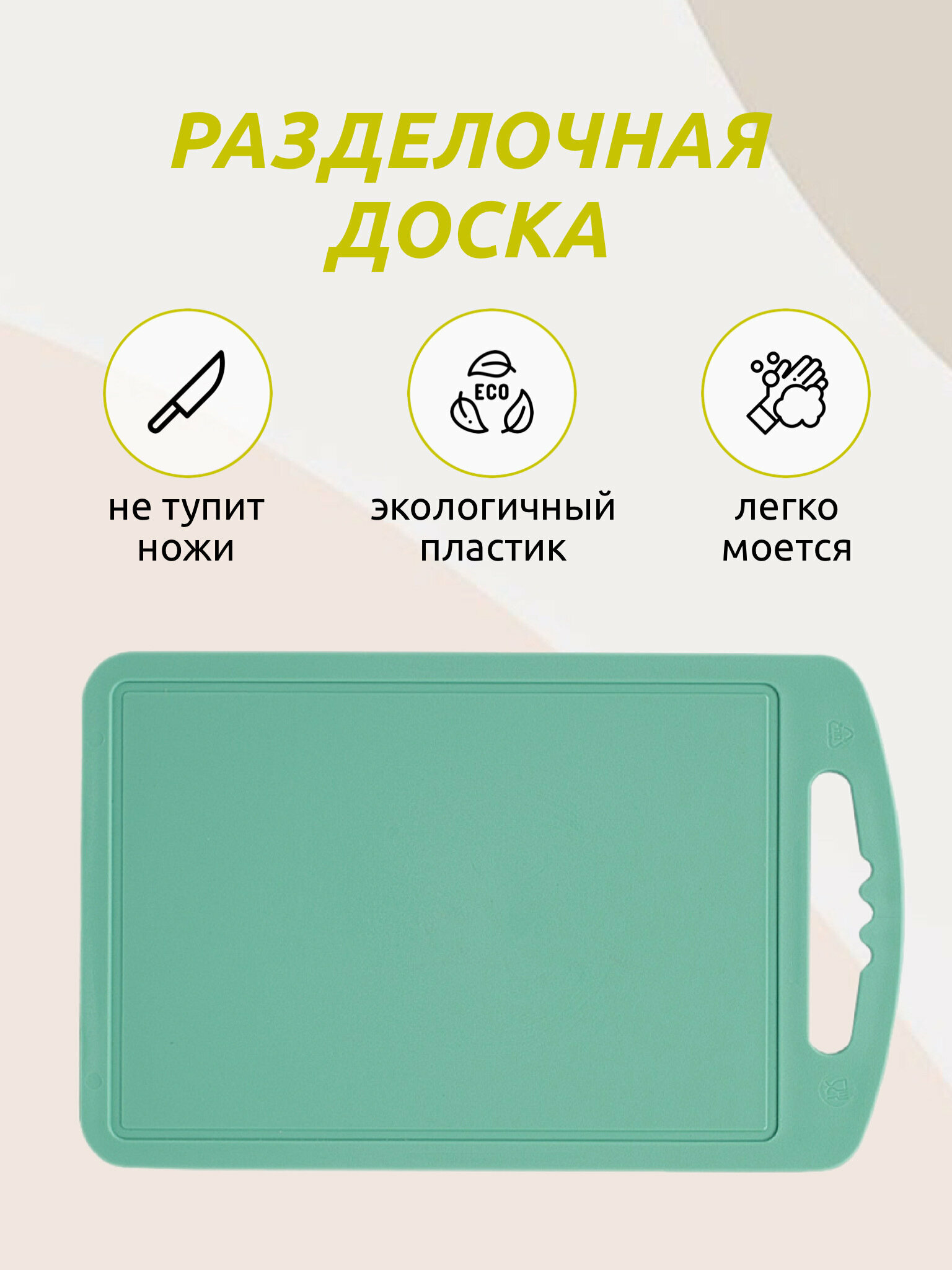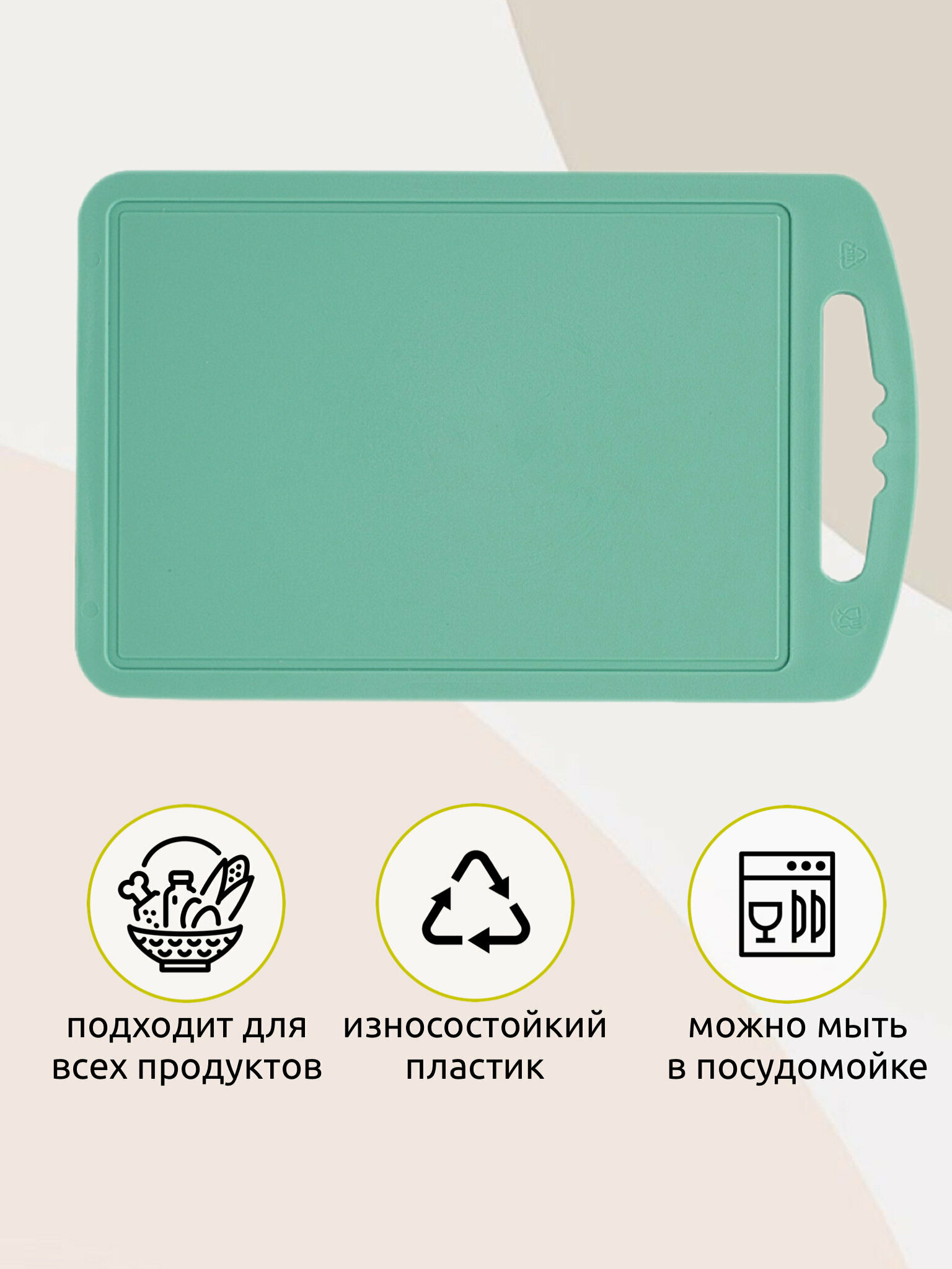 Доска разделочная Martika 18х28 см средняя, пластиковая разделочная доска, пластиковая кухонная доска прямоугольная, разделочная доска для кухни, мятный