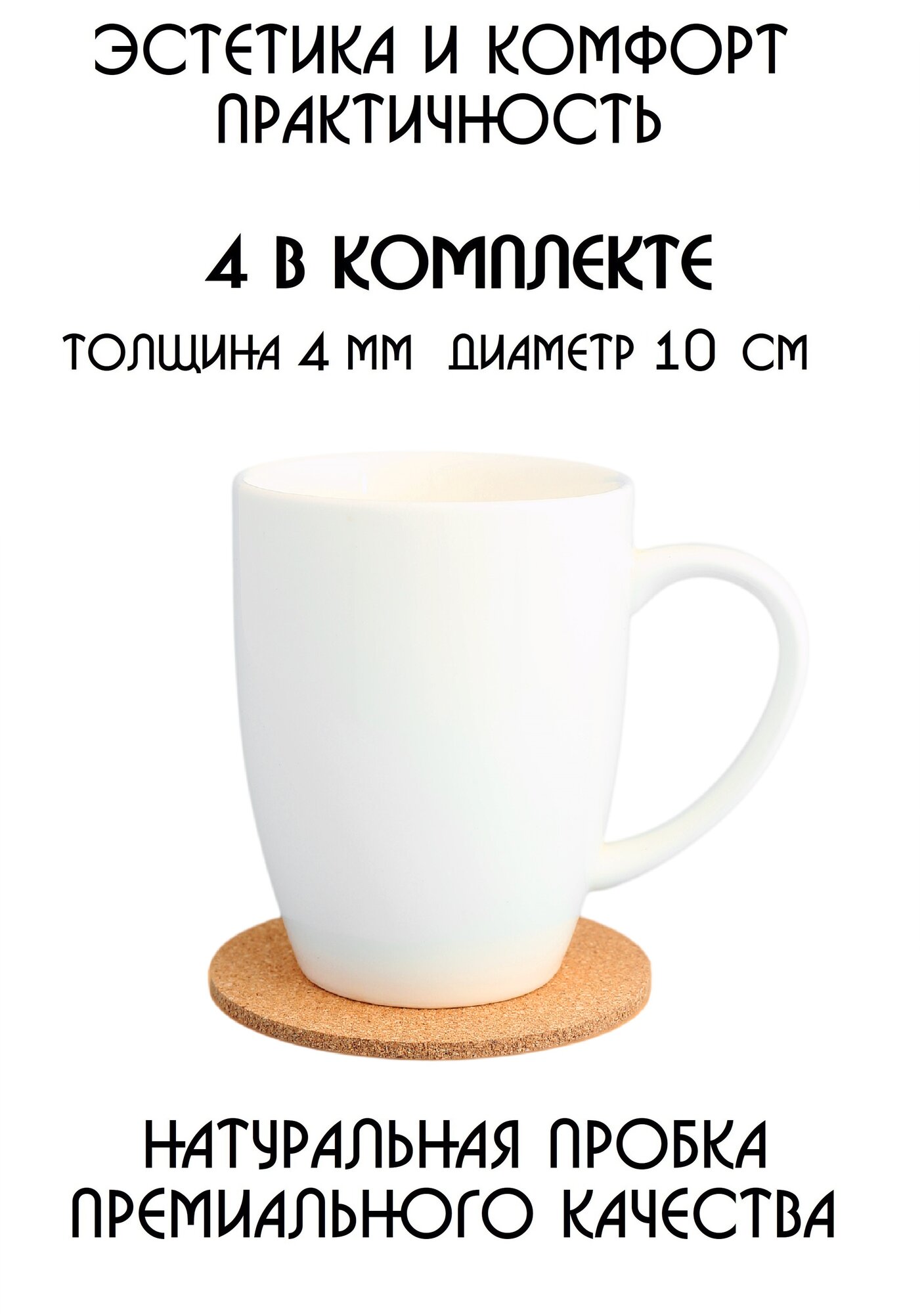Купить Набор из 4-х поставок под кружку, под стакан, под чашку, под бокал, под горячее, бирдекель из натуральной пробки