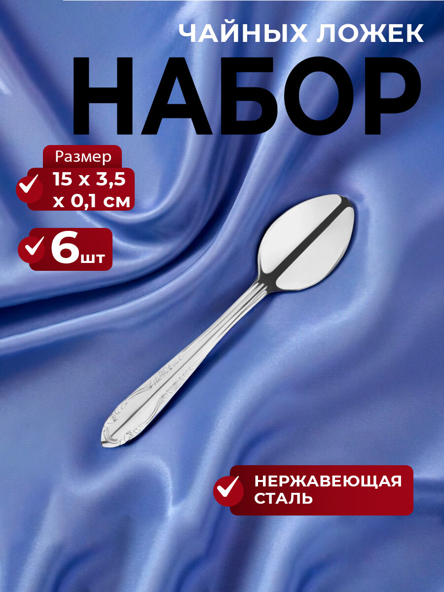 Набор ложек чайных 6 шт 0.7 мм нержавеющая сталь