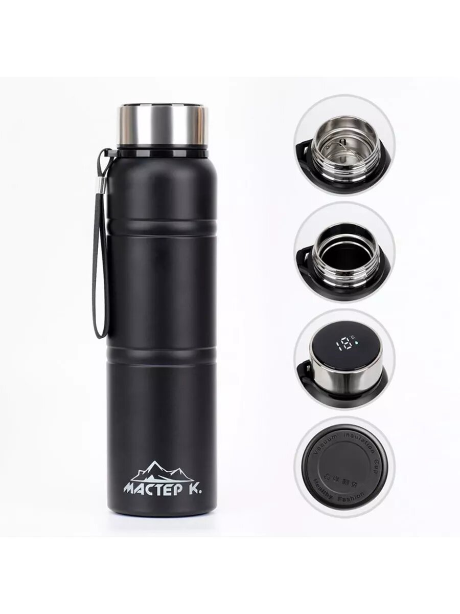 Мастер К Термос, 1 л, Warm, сохраняет тепло 24 ч, с ситечком, с датчиком температуры, чёрный