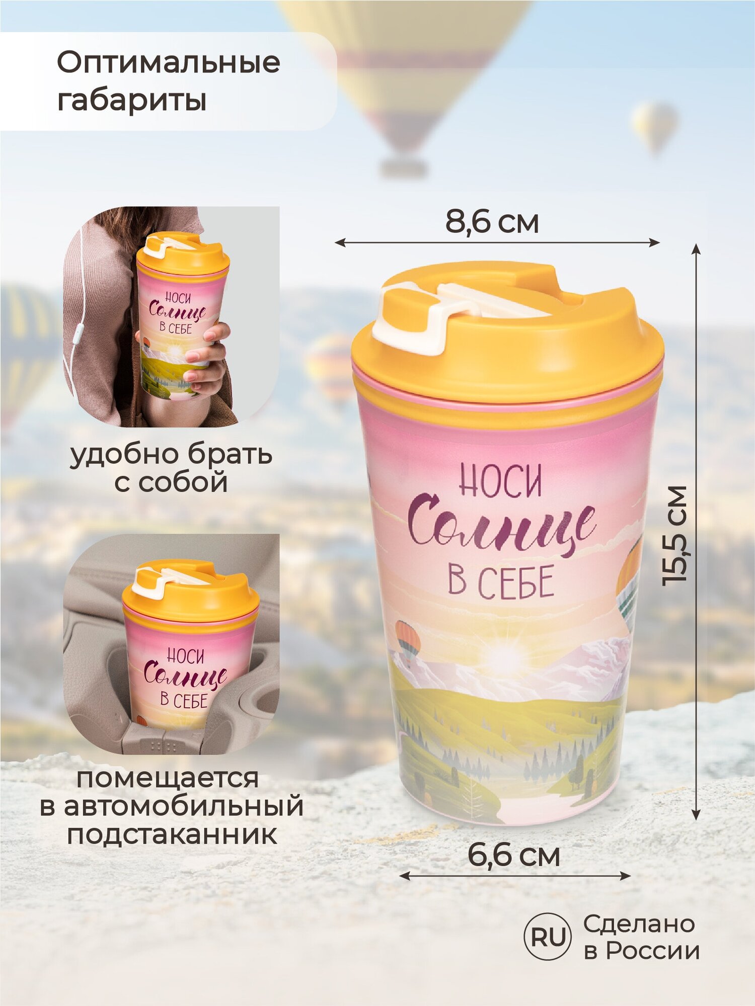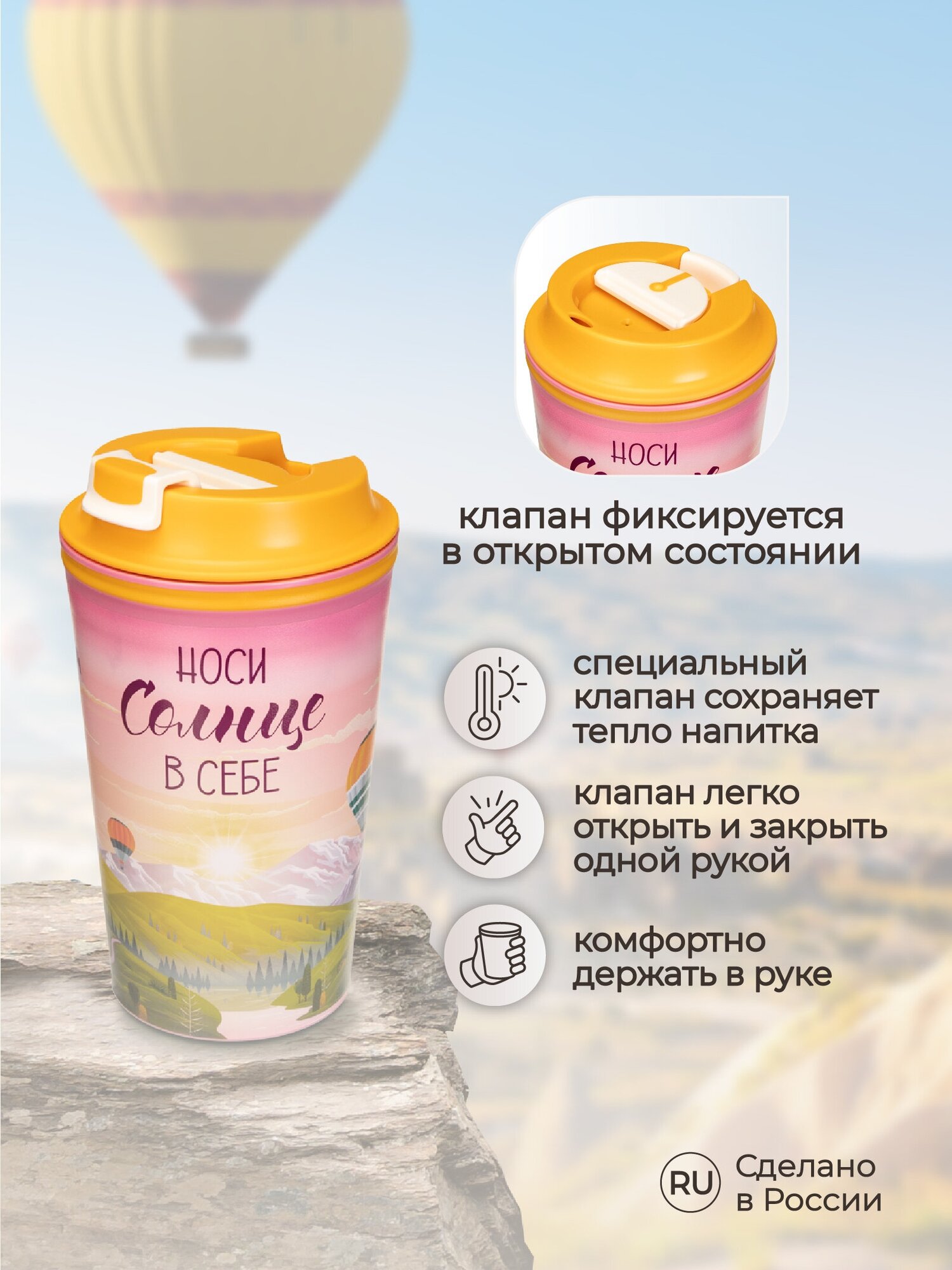 Купить Термостакан для напитков, кофе, чая 350 мл пластиковый с крышкой и клапаном, многоразовый, термокружка с принтом