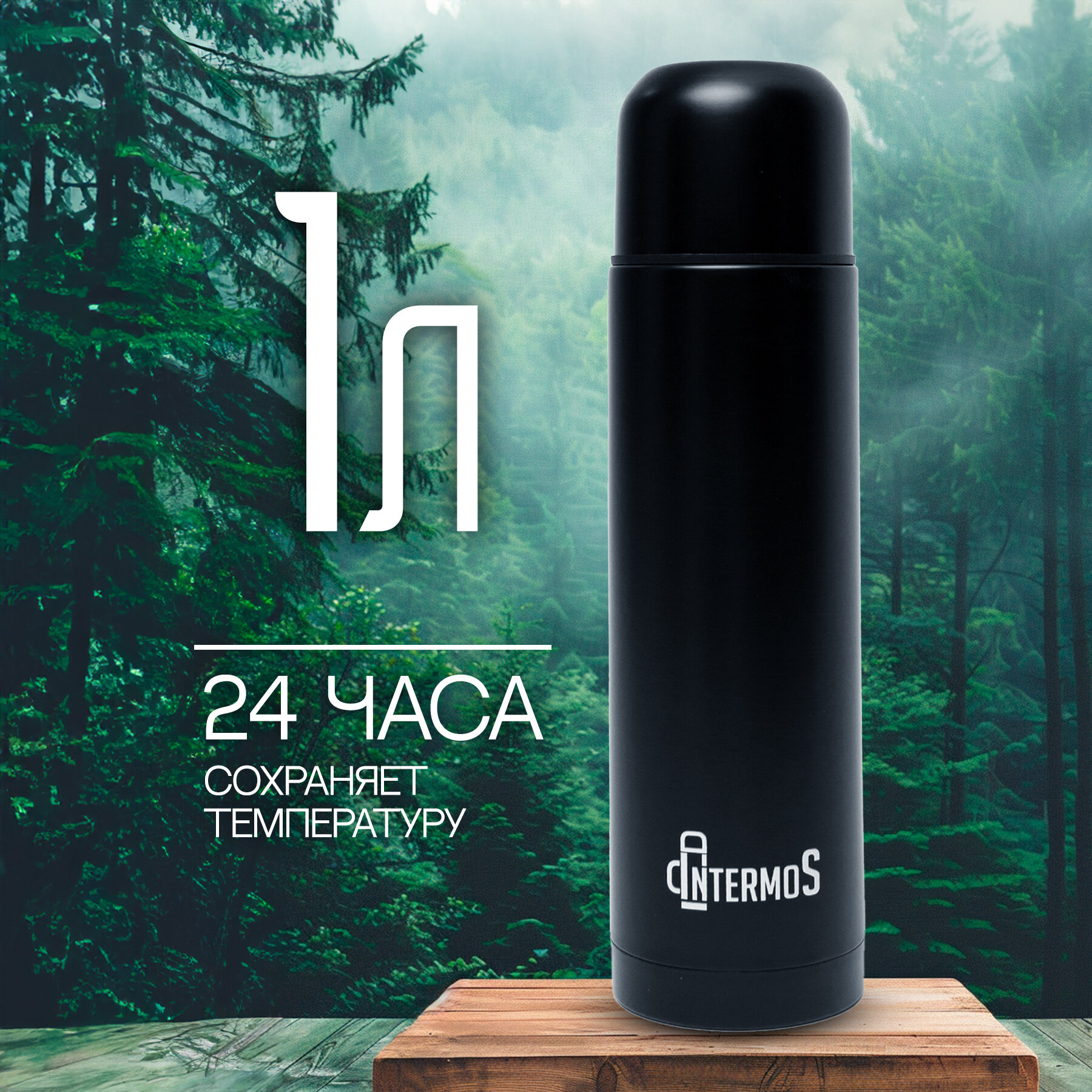 Термос 1 литр IntermoS классический с узким горлом, с кнопкой, нержавеющая сталь, черный