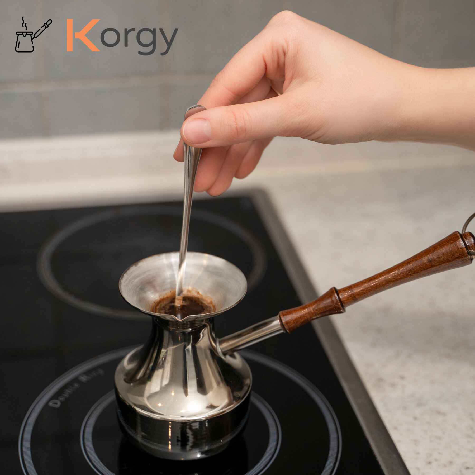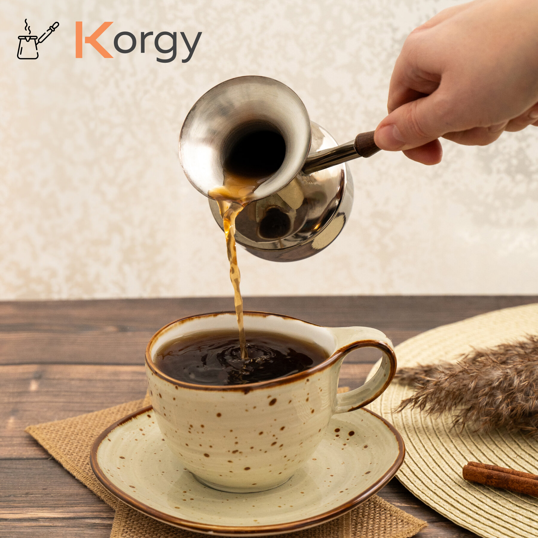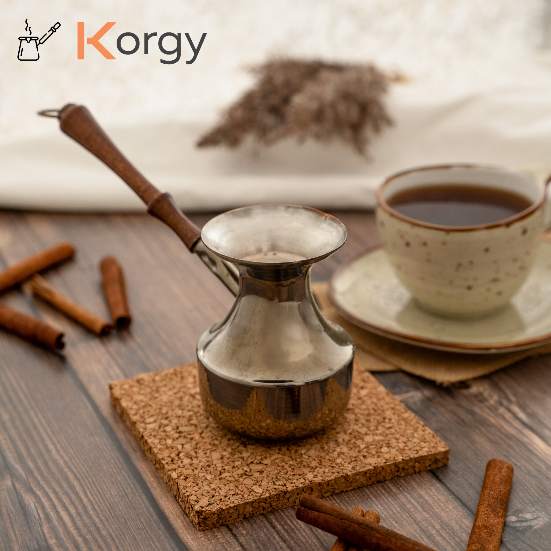 Турка Korgy, медная, для кофе, 600мл, с ложкой, теплоизоляционная ручка