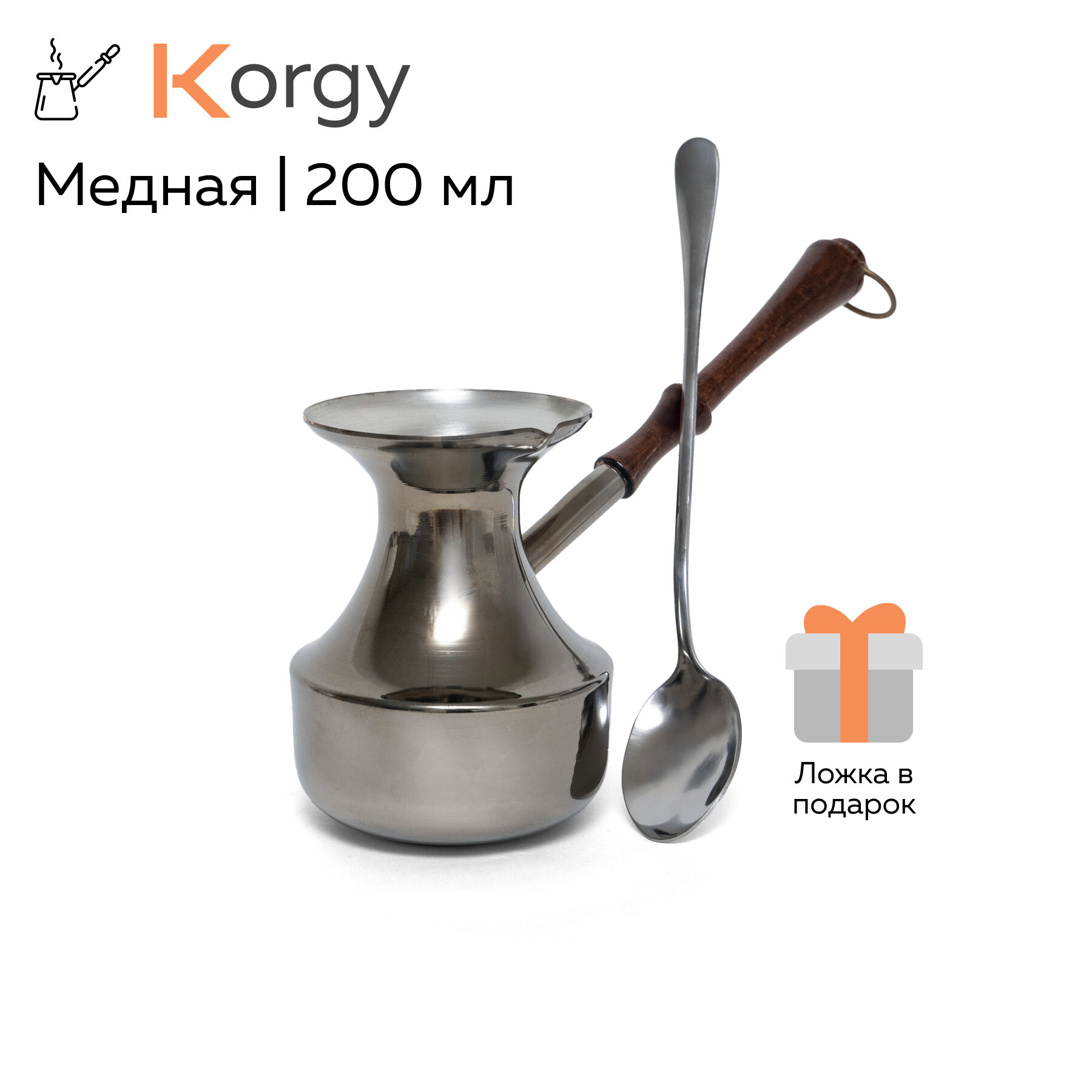 Турка для кофе Korgy медная джезва 200 мл с ложкой в надежной упаковке