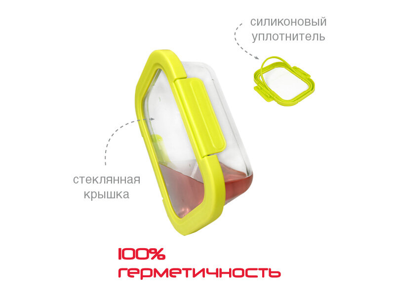 Контейнер объемом 1500 мл из жаропрочного стекла с герметичной крышкой из пластика