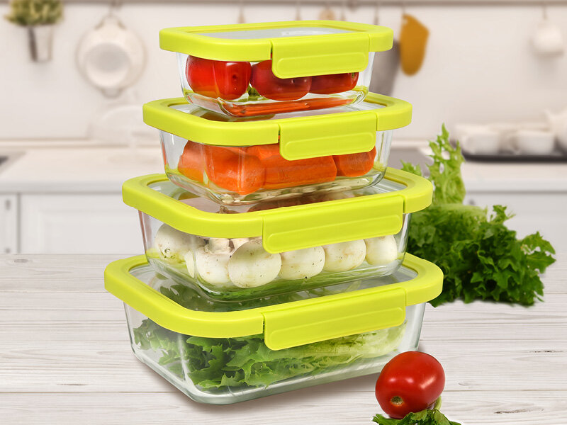Набор контейнеров Oursson "Glass Germetic Clip" CG3506SS/MT, для СВЧ, 4шт