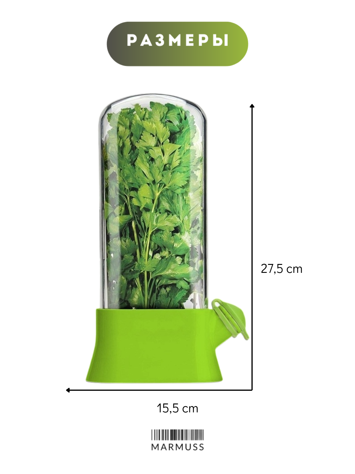 Купить Контейнер для хранения зелени Marmuss, 800 мл,прозрачно-зеленый, пластиковый, с крышкой и клапаном, для холодильника