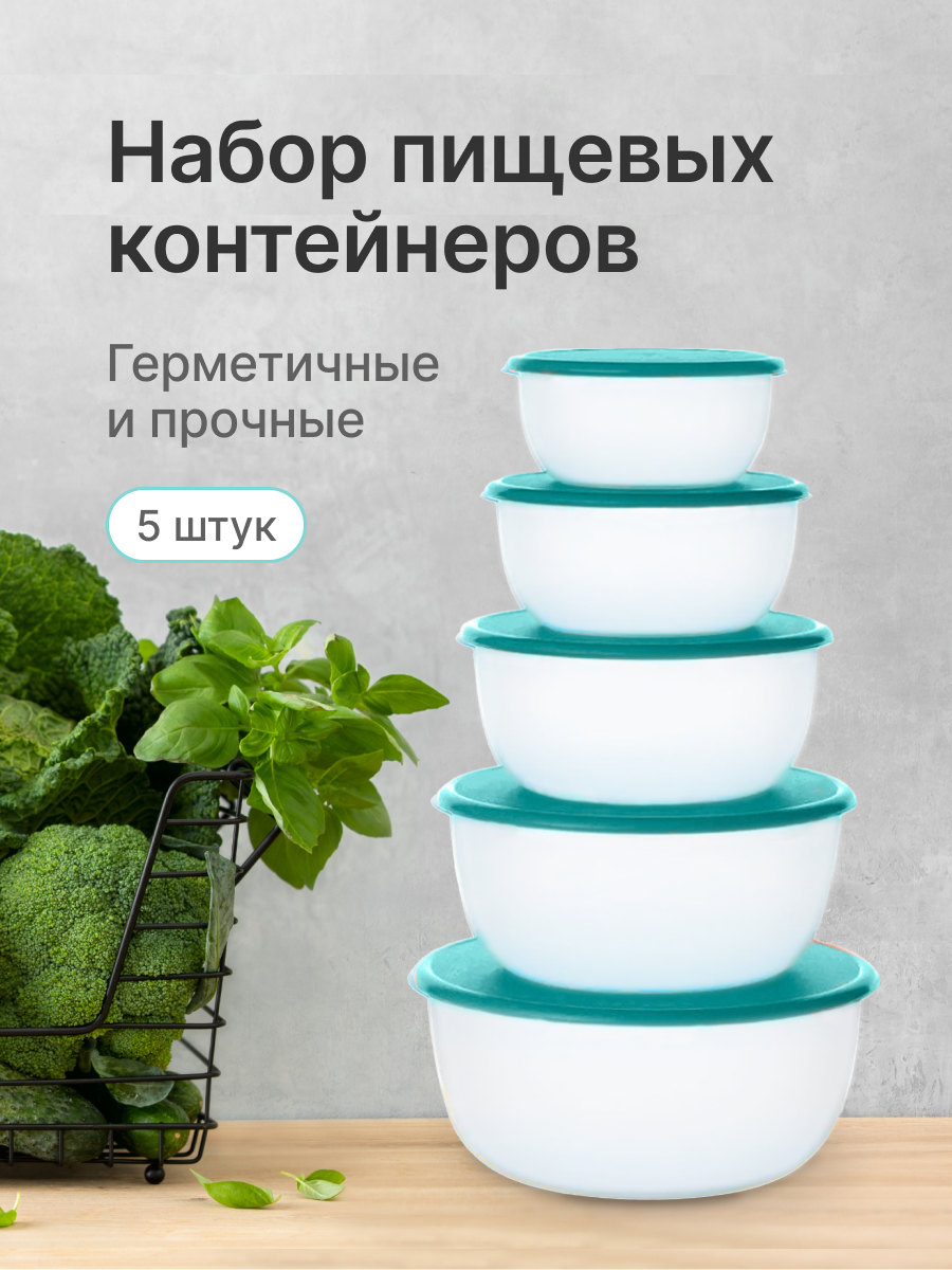 Купить Контейнер для еды Редда, набор контейнеров с крышками, герметичный, ланч-бокс, бирюзовый, 5 штук