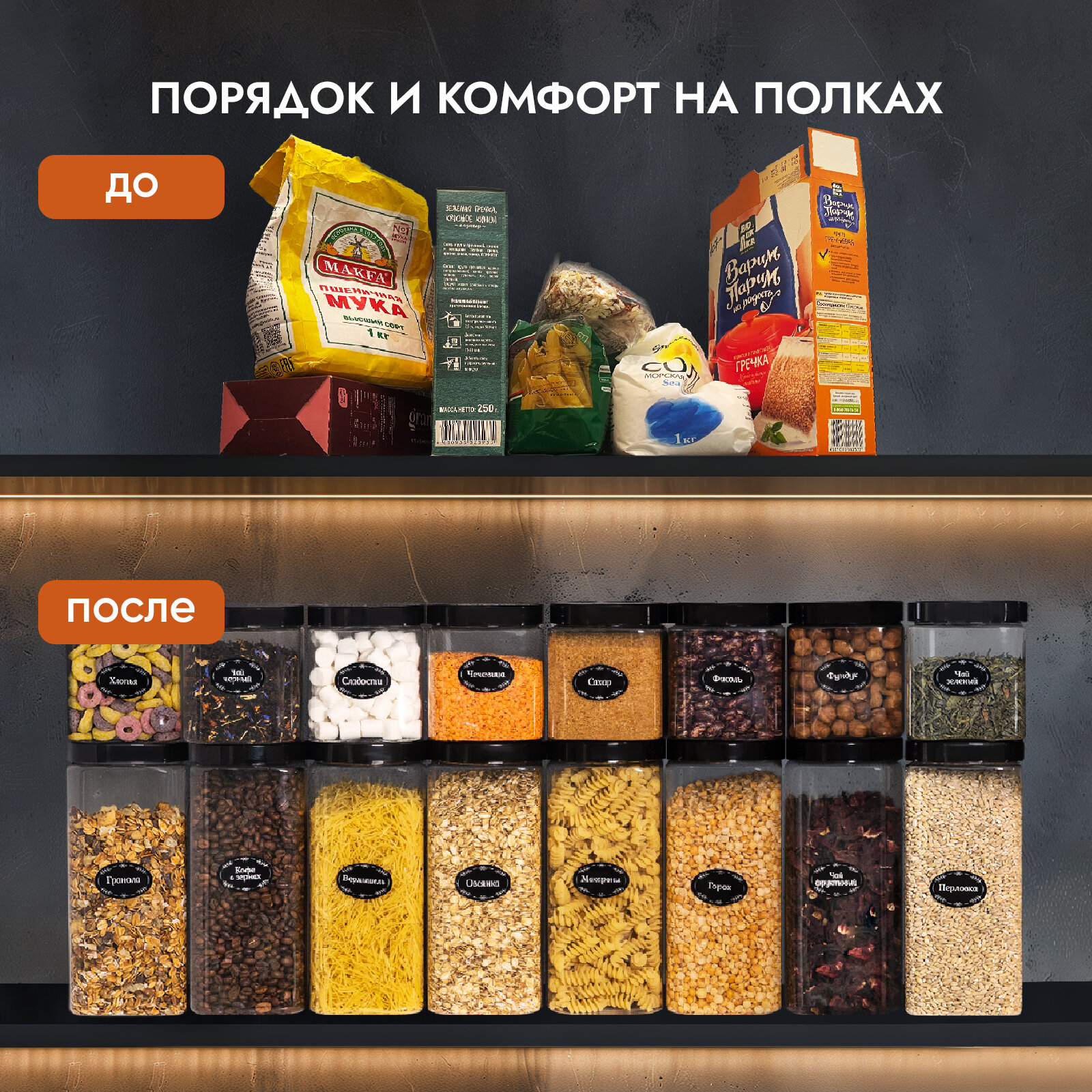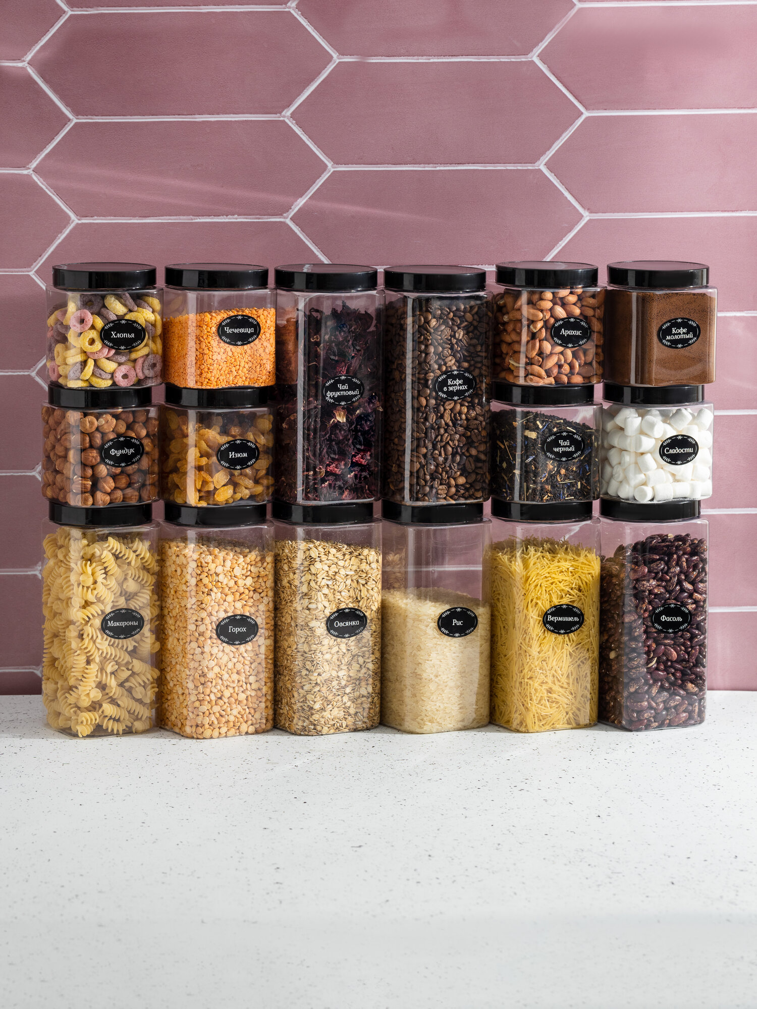 Набор банок для круп и сыпучих продуктов контейнеры 14 шт квадратной формы