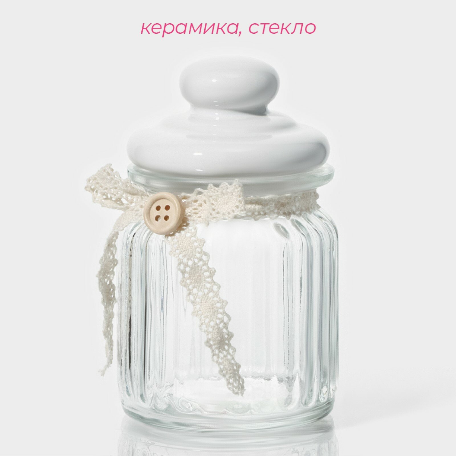 Банка стеклянная для хранения сыпучих продуктов Доляна «Варенье», 600 мл, 11×15,5 см, с керамической крышкой