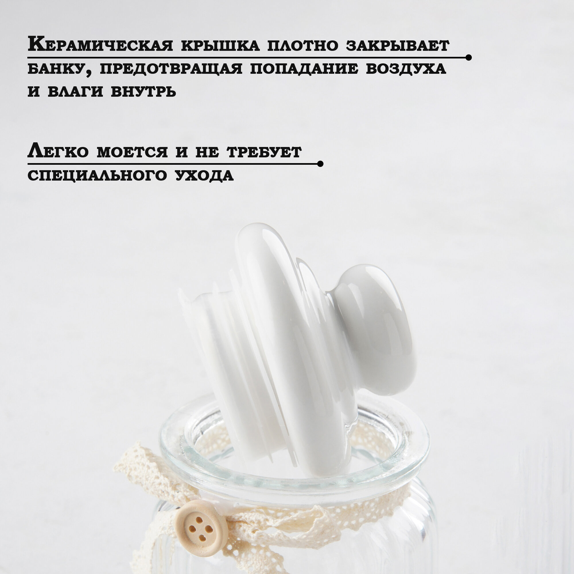 Банка для сыпучих продуктов с керамической крышкой, сахарница стеклянная Доляна «Варенье» 600 мл