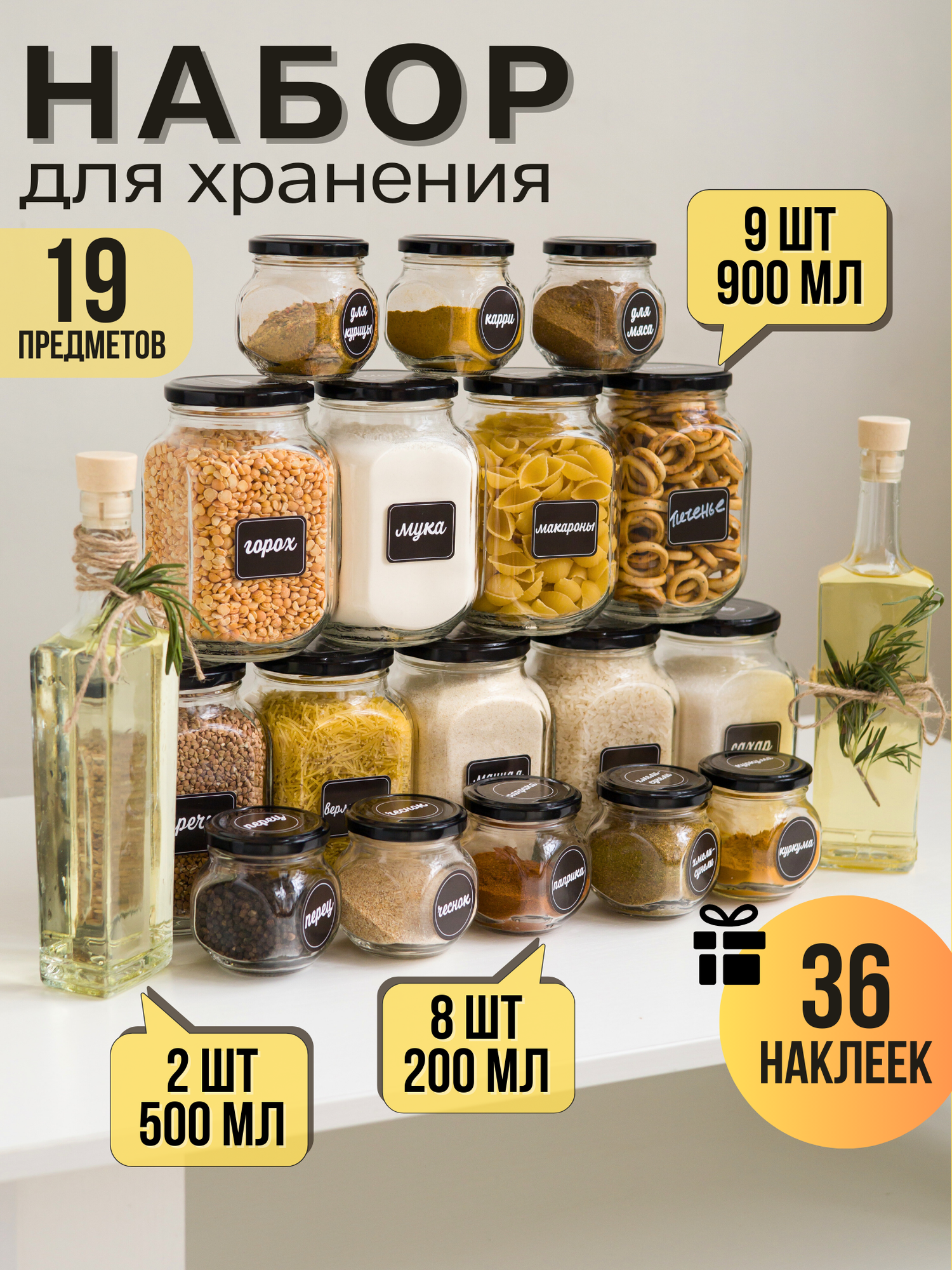 Купить Набор стеклянных банок для сыпучих продуктов Domoteka, 19 штук, объем 900мл