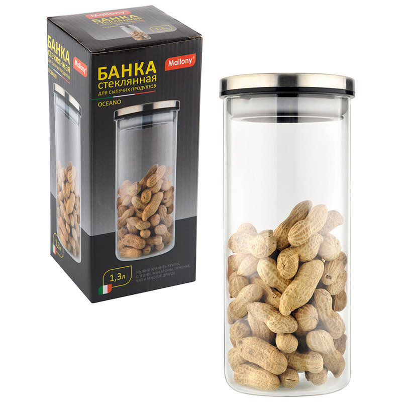 Банка Mallony стеклянная для сыпучих продуктов с крышкой из нерж стали OCEANO 1,3 л