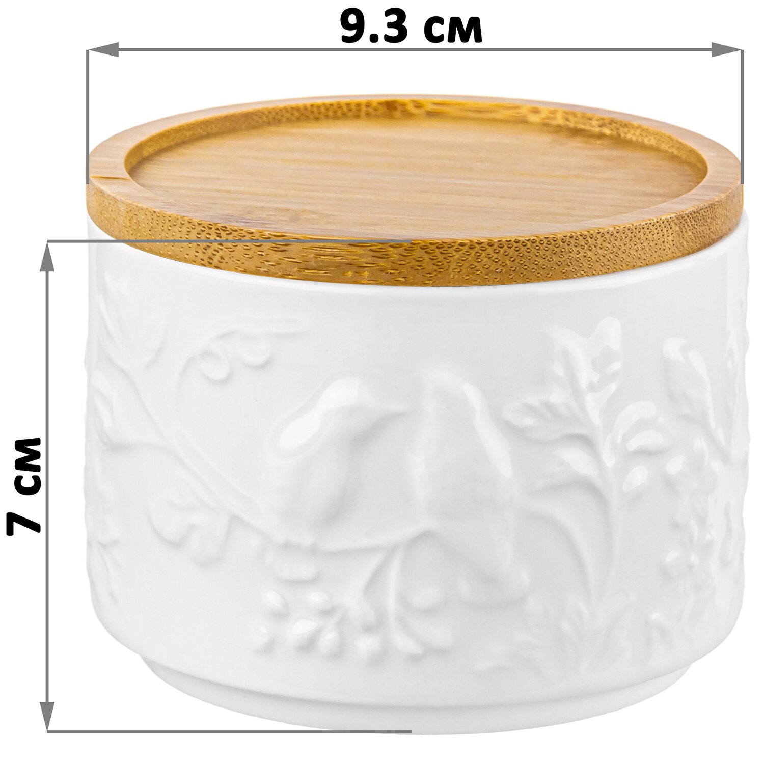 Банка для хранения 250 мл 9,3*9,3*7 см "Птички на ветке" + дер. крышка-подставка с сил. упл. (2 шт.)