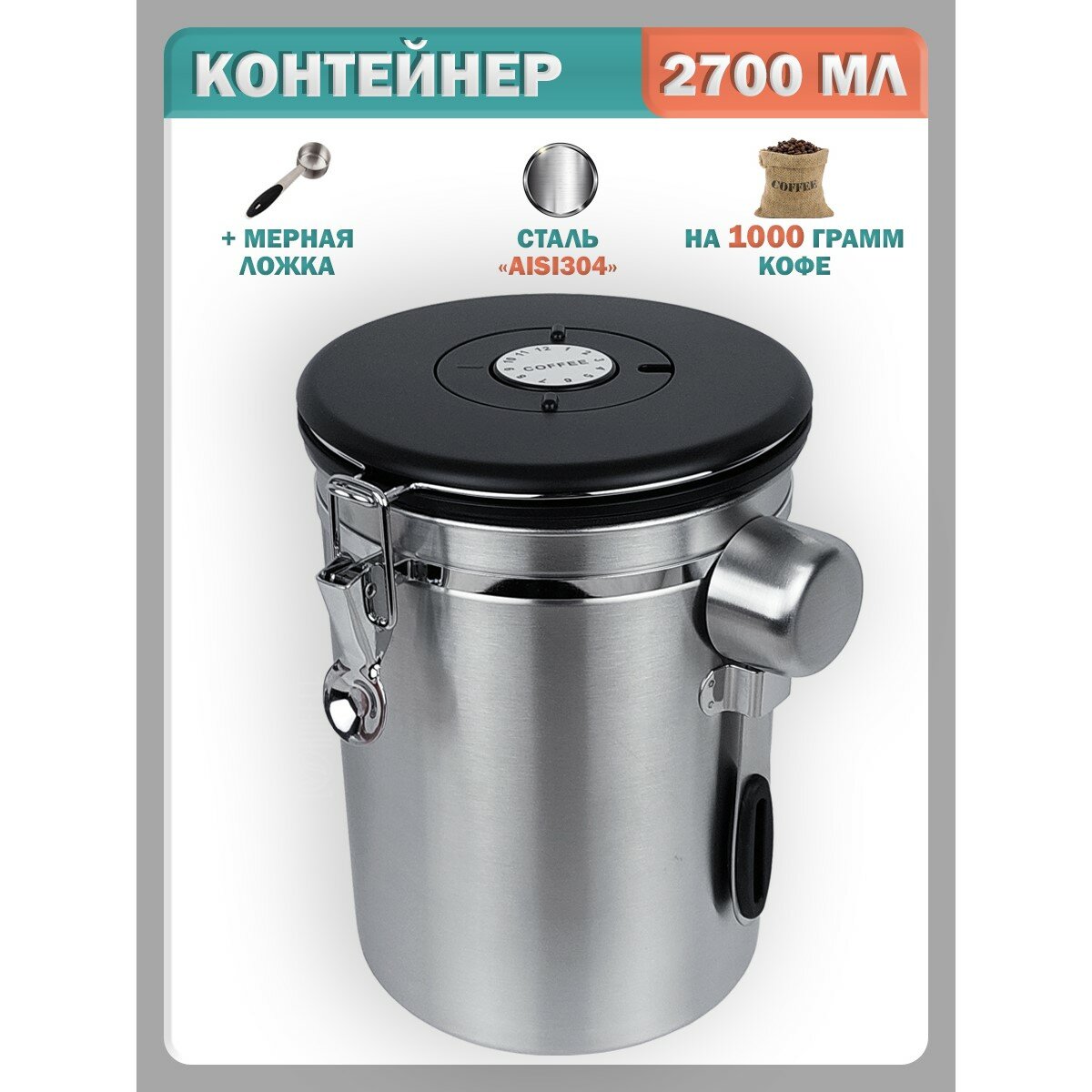Купить Контейнер для хранения кофе молотого и в зернах, для сыпучих продуктов - 2700 мл