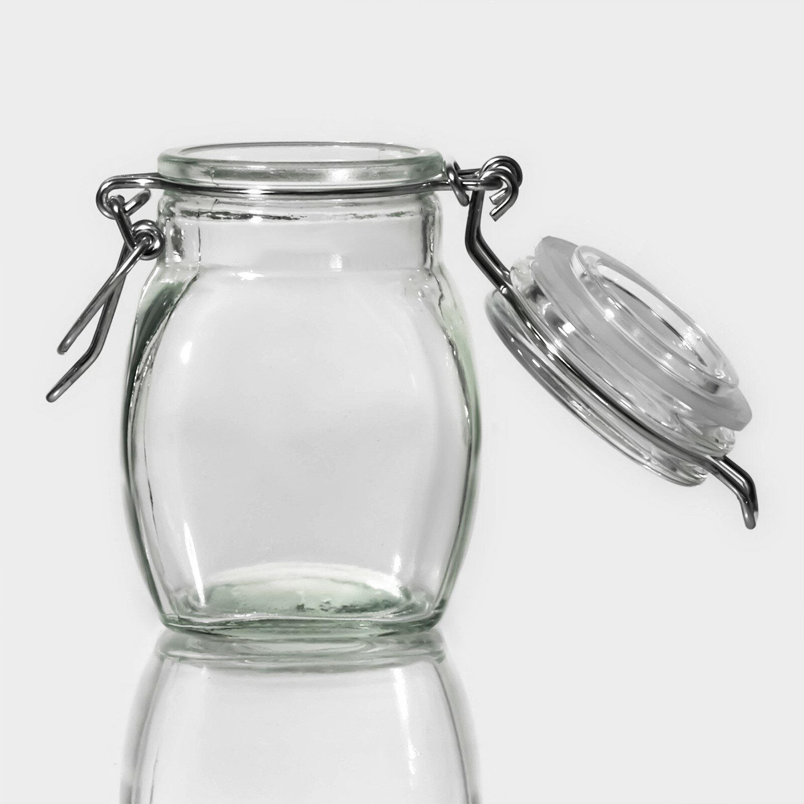 Банка стеклянная для хранения сыпучих продуктов Доляна "Овал", 100 мл, 5.5x9 см, с бугельным замком