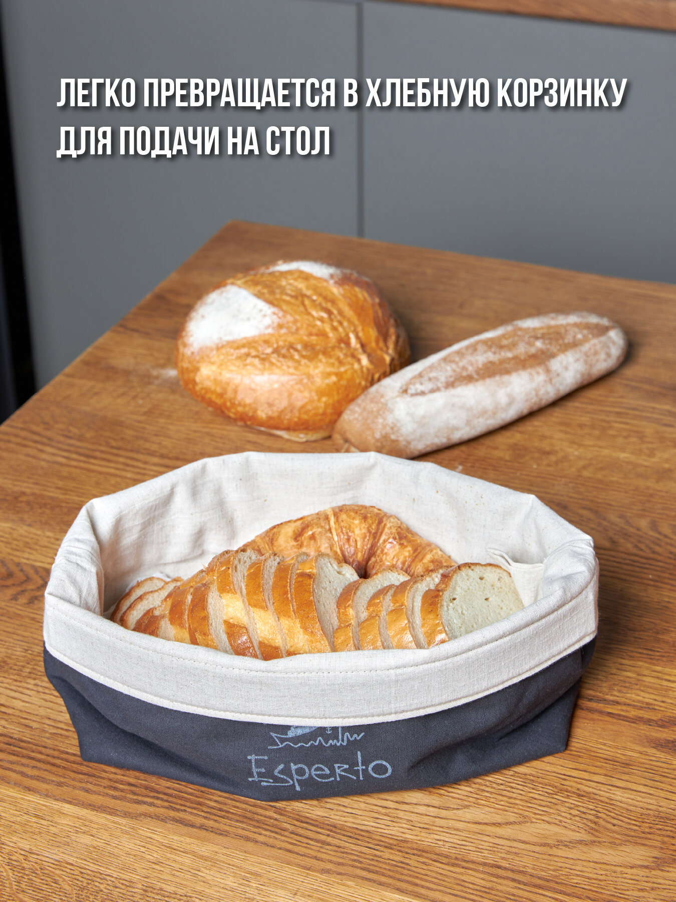 Льняной Хлебный клатч Esperto Premium ML, хлебница, белорусский лён, контейнер для еды, подарок, цвет бежевый, (6,3 л.)