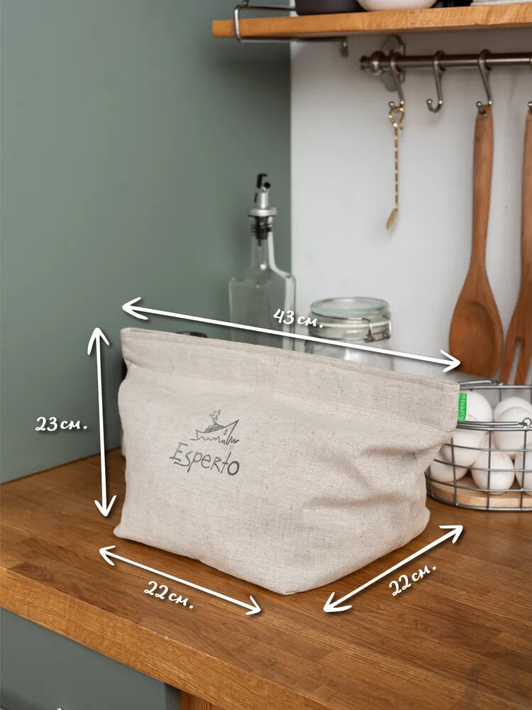 Льняной Хлебный клатч Esperto Premium ML, хлебница, белорусский лён, контейнер для еды, подарок, цвет бежевый, (6,3 л.)