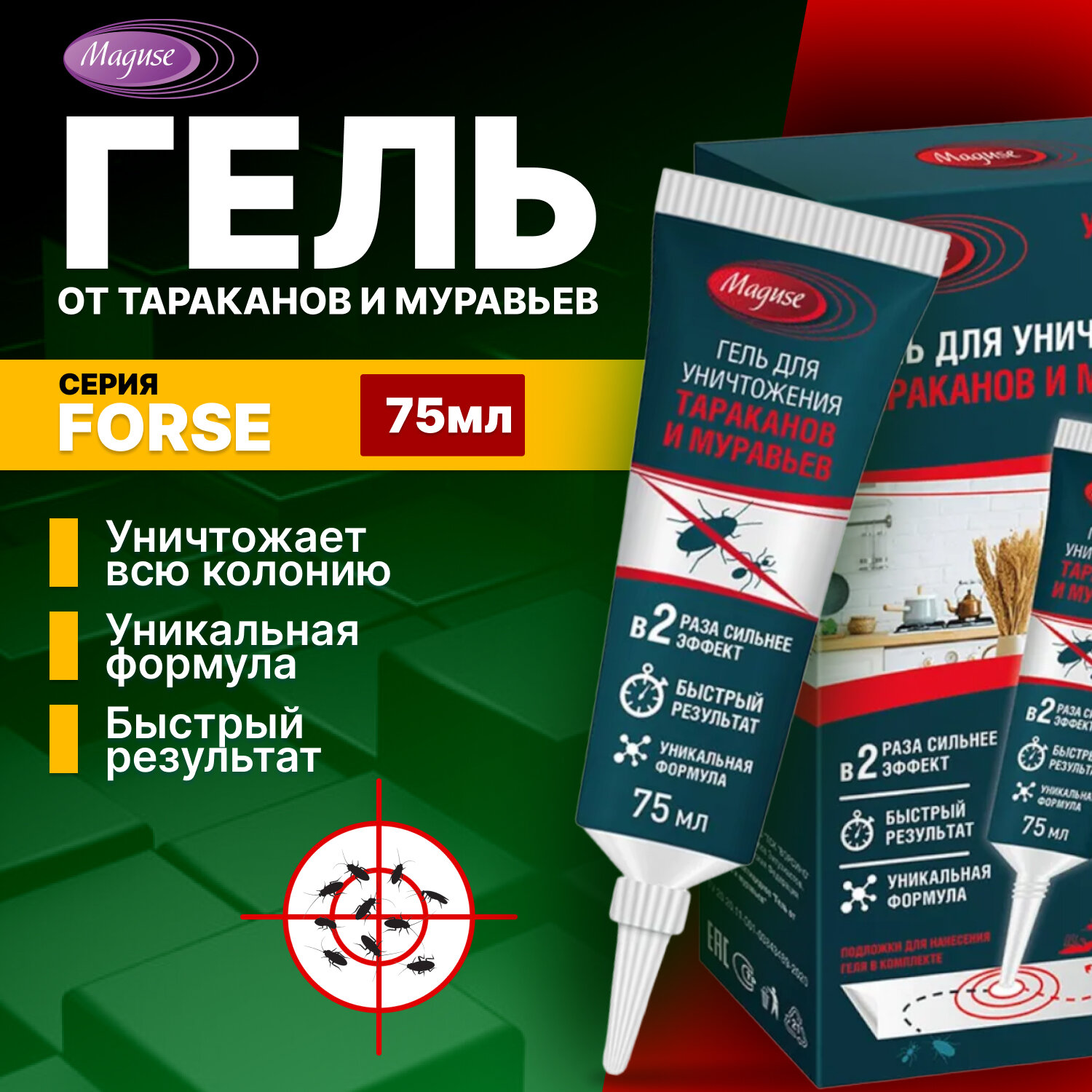 Гель от тараканов и муравьёв Force Maguse, 75ml
