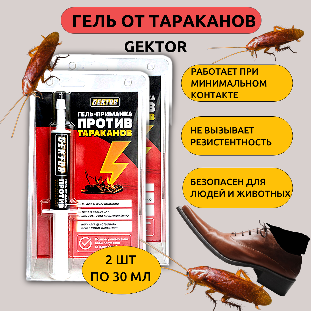 Купить GEKTOR гель против тараканов 30 мл, 2 шт