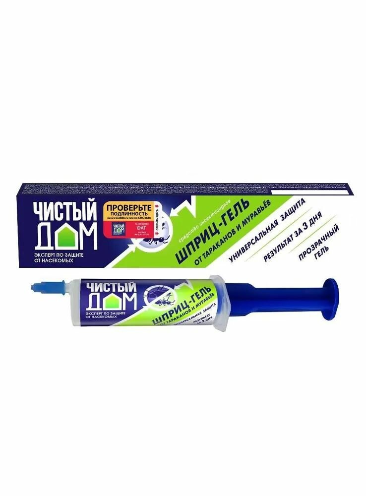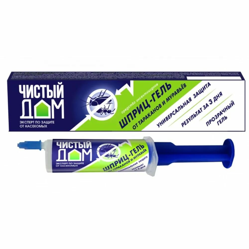 Гель Чистый дом шприц от тараканов и муравьёв, 20 г, 20 мл, прозрачный