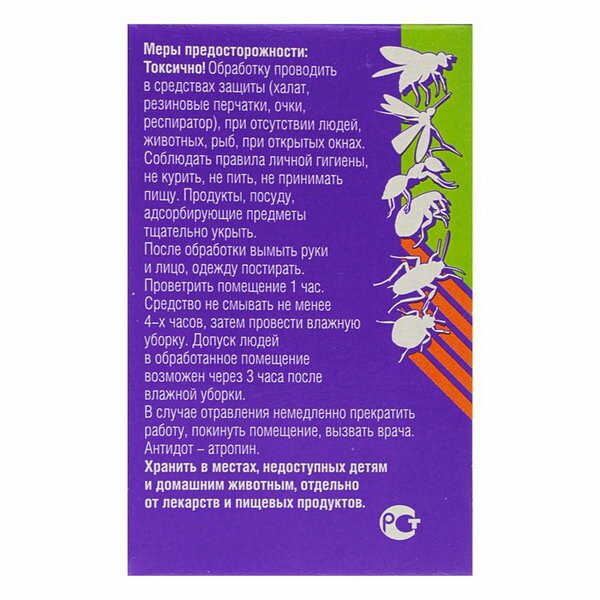 | Дополнительная информация | обработку проводить в средствах защиты при отсутствии людей и животных, при открытых окнах |