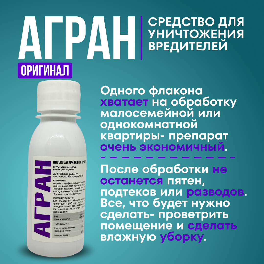 Агран 50 мл. оригинал / от клопов, тараканов, блох, муравьев, мух, и других насекомых
