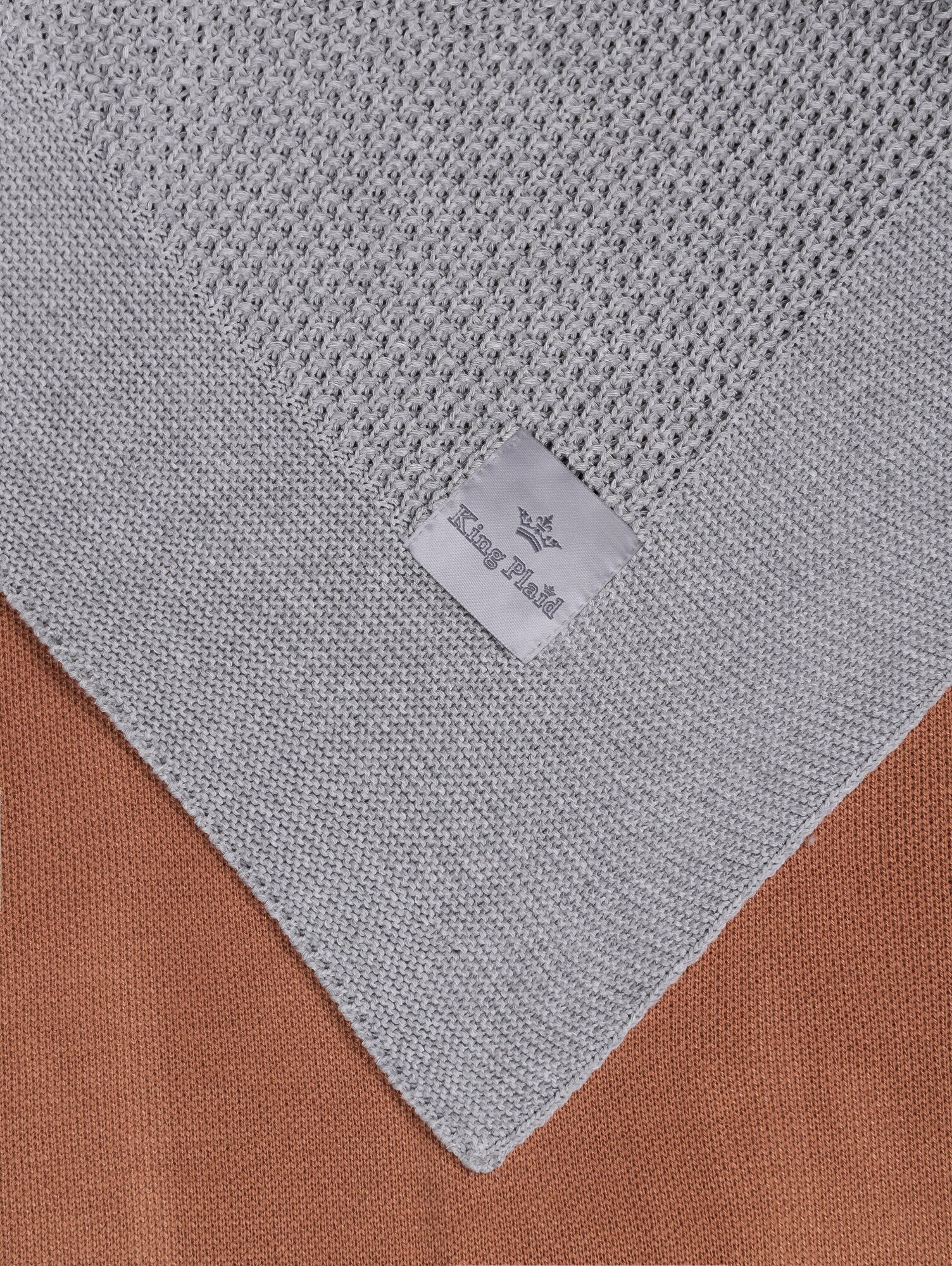 Плед 160x220, вязаный, KING PLAID, серый, хлопок, покрывало на кровать, на диван, на кресло, в подарочной сумке