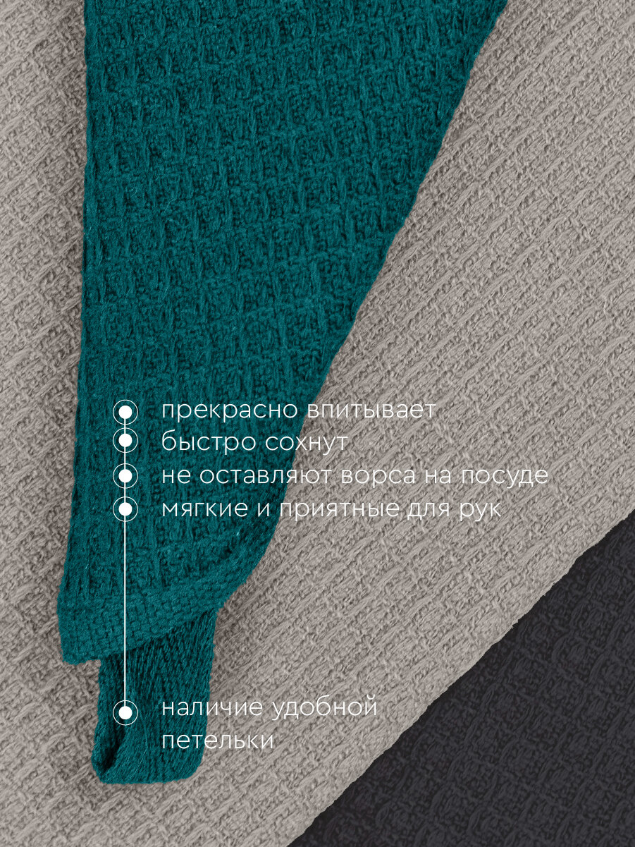 Набор кухонных полотенец Лофт 30х60, 3шт, Серый-изумрудчерный